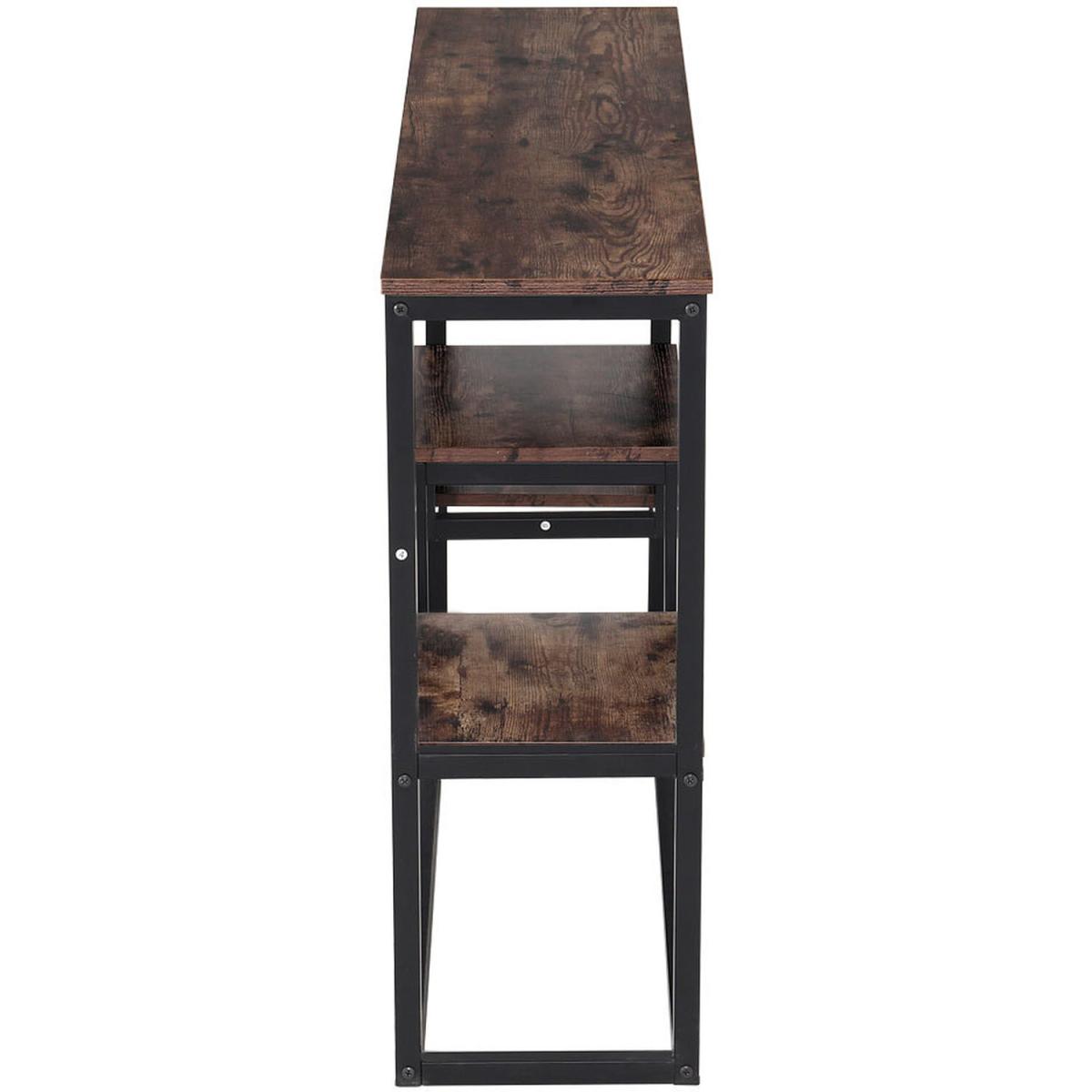 Are you looking for the furniture owning both fashion and practicality? This console table is made of durable density board and sturdy iron pipes, which ensures a long service life. The rustic surface and simple structure create a charming industrial style. The open shelf provides adequate storage space for books, toys, crafts, plants, etc. The smooth surface is easy to clean, and you can wipe it effortlessly with a damp. Come with screw fixings, flat package, easy to assemble. Moreover, this multifunctional sofa table is suitable for your kitchen, living room, entryway, study, office and so on.