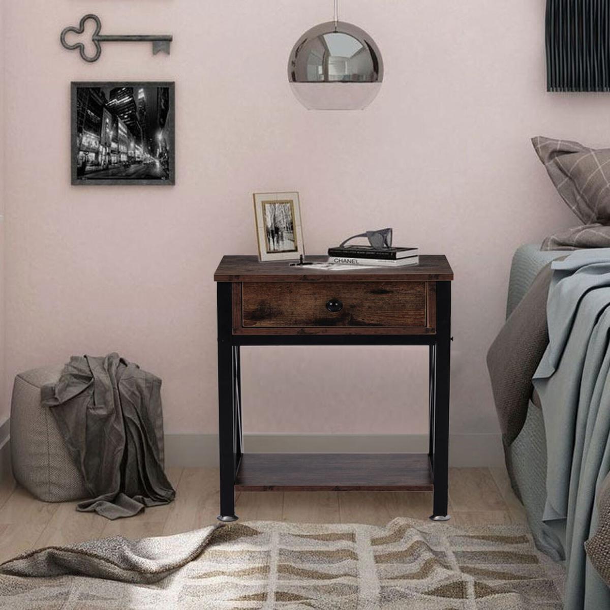 The uncomplicated shape of this side table allows it to fit beside to your bed, sofa, or in the hallway. Made of MDF wood material, has a solid construction. Compact and lightweight character can move around easily. With a convenient and practical drawer with smooth metal drawer slides and a durable metal handle. Fixed bottom shelves provide additional storage space for magazines, decorations, etc. All necessary hardware, tools and clear instructions are included in the package, very easy to assemble. It is a perfect gift for someone special or treats for you ,simple design makes this end table perfect decoration for your home.