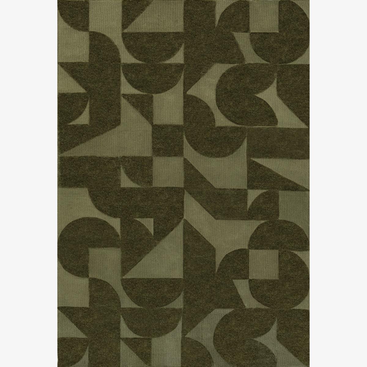 I love this piece as a statement rug with its bold geometric pattern and versatile olive tone. It works particularly well in contemporary or minimalist interiors, adding visual interest without overwhelming the space. When styling, consider pairing it with neutral furnishings to let the rug stand out, or add complementary earthy hues for a cohesive look. It's practical too-its medium size makes it perfect for living rooms or cosy reading nooks, and its muted colour palette ensures it won’t clash with other colours in the room. A good tip is to keep surrounding textiles simple to let the graphic design really shine.