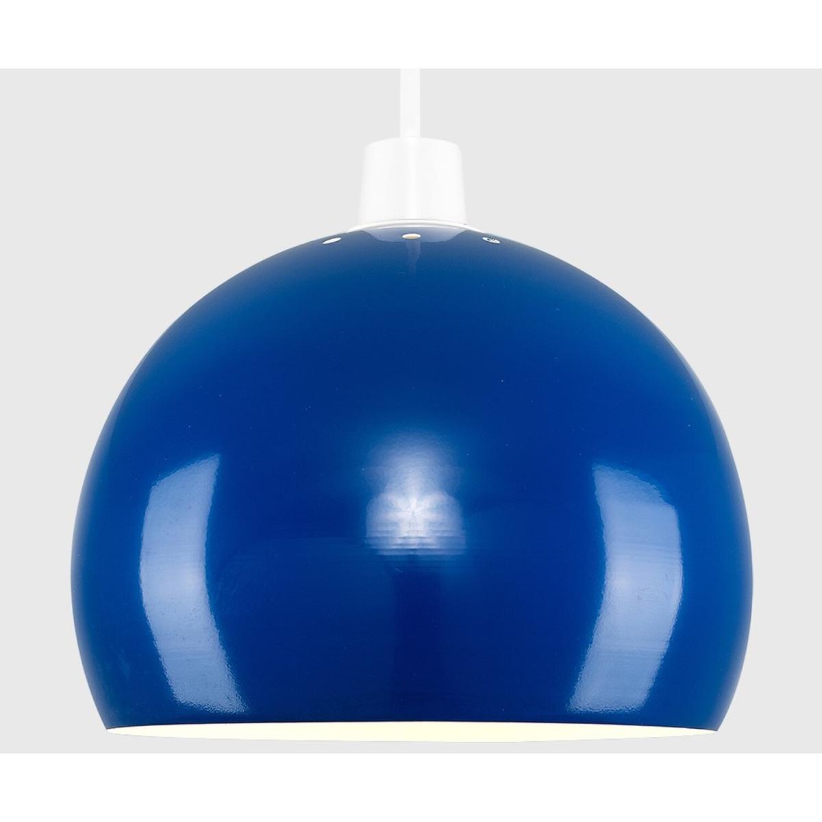 Mini New York coffee house retro style ceiling pendant light shade in a gloss blue finish. Modern Arco dome shape - ideal for kitchens, dining areas, living rooms, bedrooms and hallways. Easily fits to your standard light socket in a matter of seconds - so no electrical installationwiring required! Ceiling lights are usually the main source of illuminating a room but with the many styles on offer today, also become a main focal point or talking point. The right fitting can make a real style statement and complete your living space look. 1 x 60w BC B22 GLS Bulb is Required