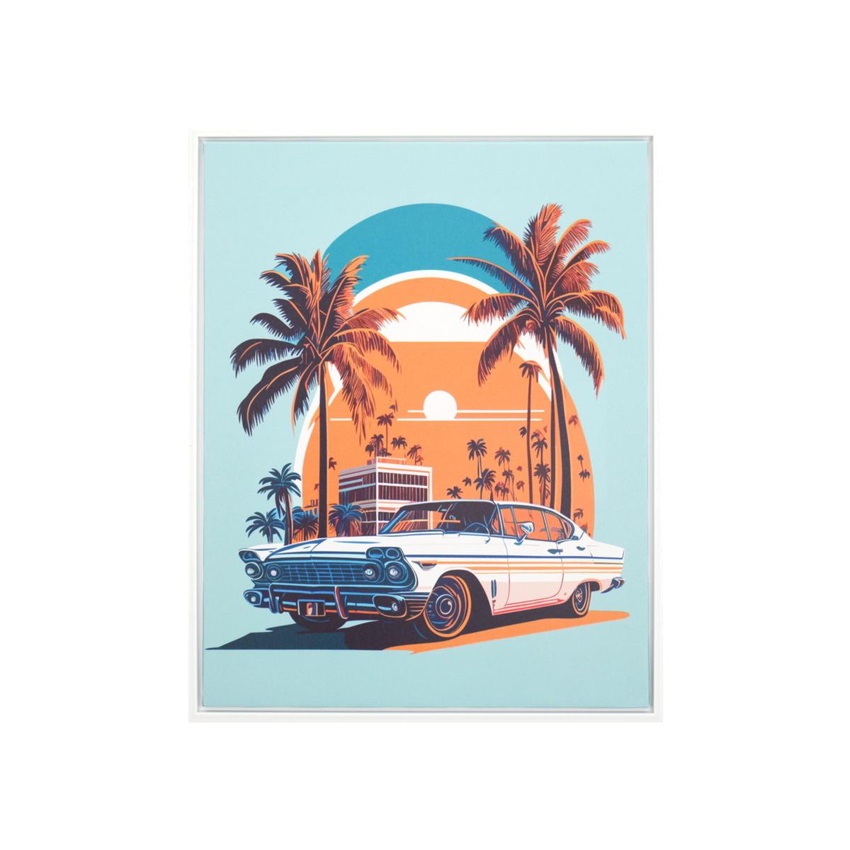 I love this retro car print for its vibrant colours and nostalgic vibe, making it a versatile piece for various interiors. It works particularly well in casual living spaces, coastal-themed rooms, or even a home office looking for a pop of colour. To style it effectively, consider pairing it with minimalistic or mid-century furniture to let the artwork stand out, or combine it with other colourful accessories for a lively, eclectic look. Framing in a simple white or coloured frame can enhance its playful, vintage feel, and hanging it in a spot with good natural light will really make those colours pop.
