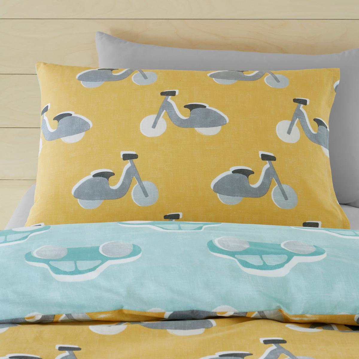 Boasting a retro and fun car printed design, this bedding set would add a stylish touch to your little one's bedroom. With a fully reversible design, this bedding set has cars on the front and scooters on the reverse. Made from 100% cotton, this bedding is soft durable and machine washable. Coordinating cushions and curtains are also available. This collection is verified by OEKO-TEX® and independently tested for harmful substances as well as manufactured using sustainable processes under socially responsible working conditions. MADE IN GREEN by OEKO-TEX® is a unique product label to trace the countries and production facilities - search the product label for more information.
