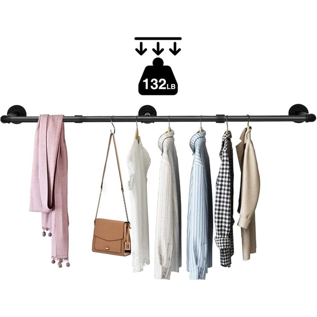 Retro clothes rail garment rack clothing hanger wall mounted 184cm length industrial pipe. The clothes rack can be used in your home, bathroom, bedroom, laundry room and balconies. Add extra hanging space for a clothing retailer, work room, for display your favorite clothes. Hanging your frequently-used clothes up and you can find them quickly, you can also keep them neatly organized and wrinkle-free. Thanks to a 26 cm distance between the wall and hanging rod, they offer enough space for most hangers and clothes.