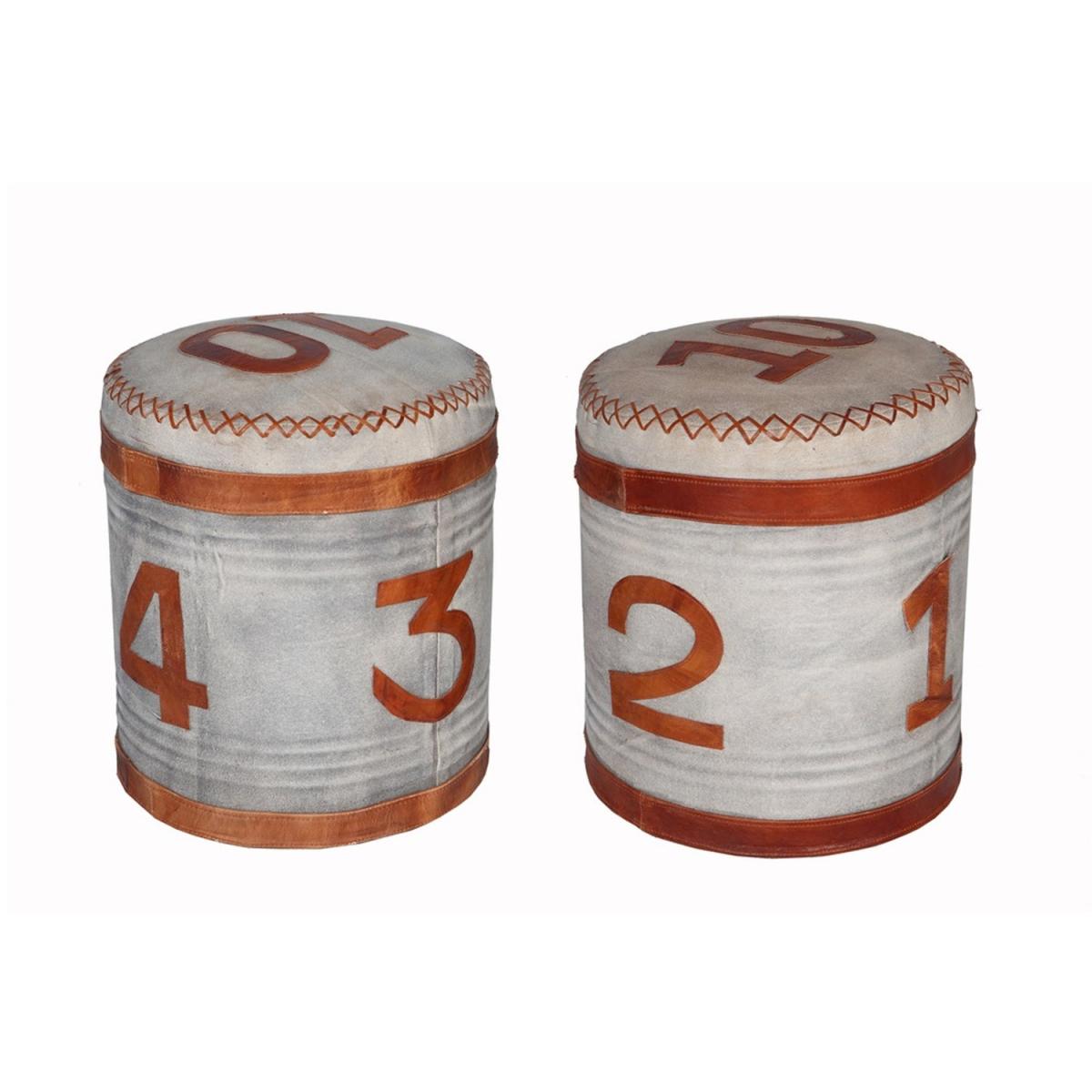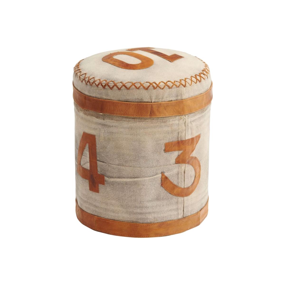 This Industrial inspired RETRO Stool Ottoman is a versatile and very eye-catching piece of furniture thanks to the writing imprints. Made from Robust canvas fabric 100% cotton and leather, this Ottoman will provide a great decorative piece as well as useful sitting in any area of your home.