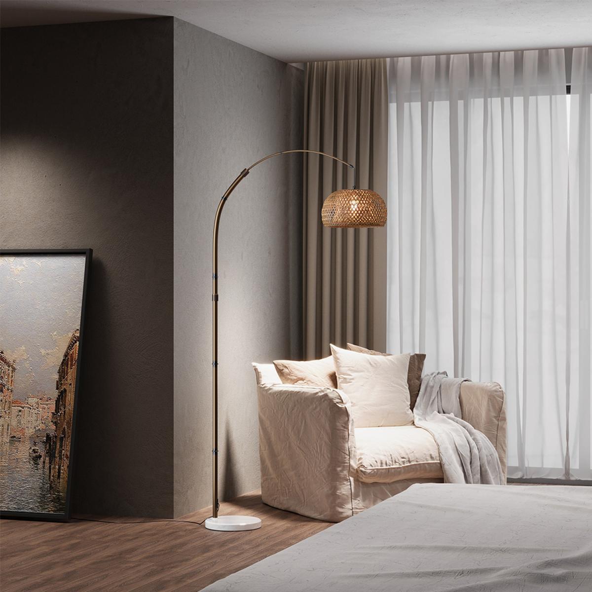 This floor lamp combines postmodern and retro styles, making it a stunning home decor piece. The bamboo lampshade gently diffuses light, creating a cozy and inviting atmosphere, while the wood grain finish adds a natural, warm touch. The convenient foot switch allows easy light control without bending. It includes a standard E27 lamp holder, compatible with various bulb types (bulbs sold separately). More than just a light source, this lamp is a work of art that adds elegance and style to any room.