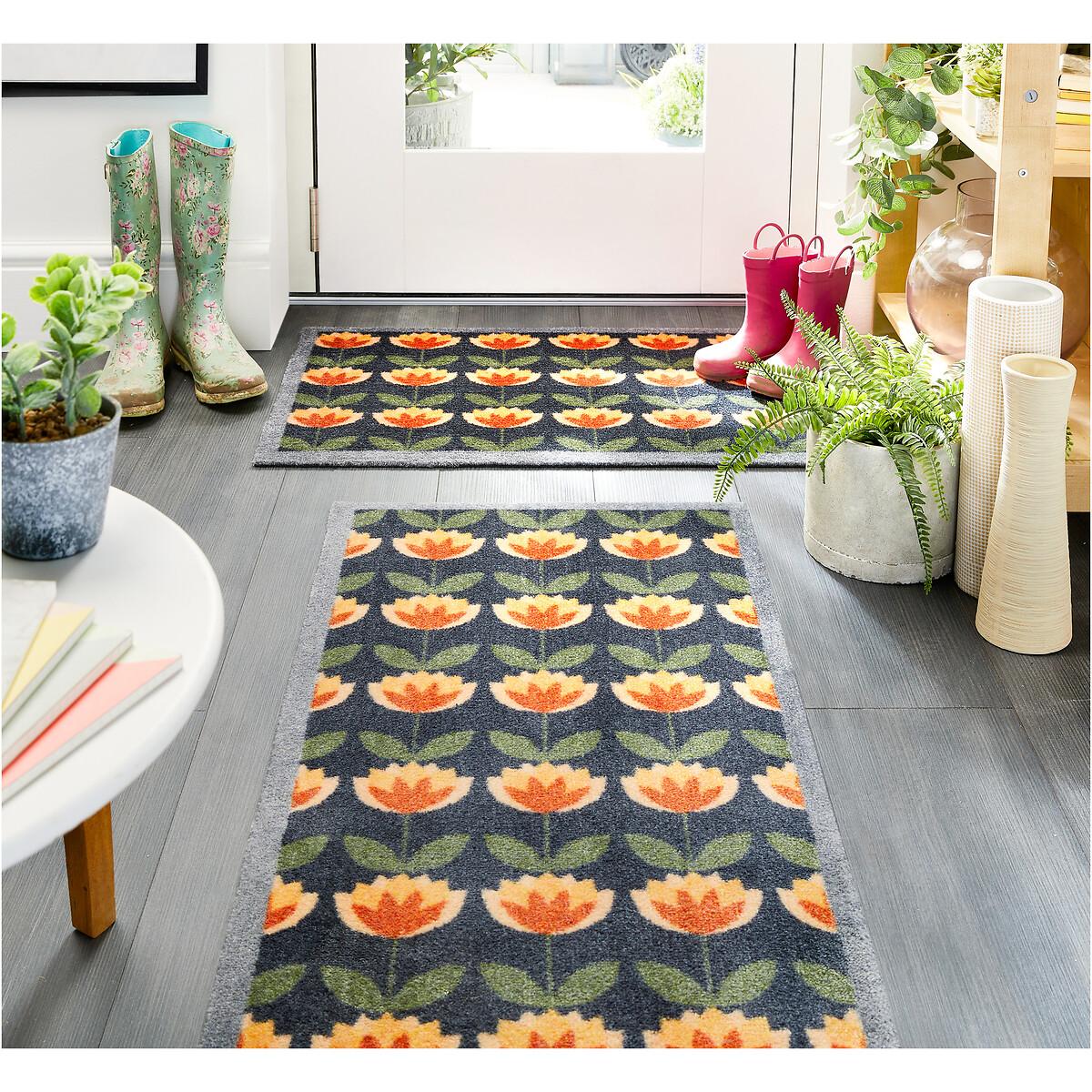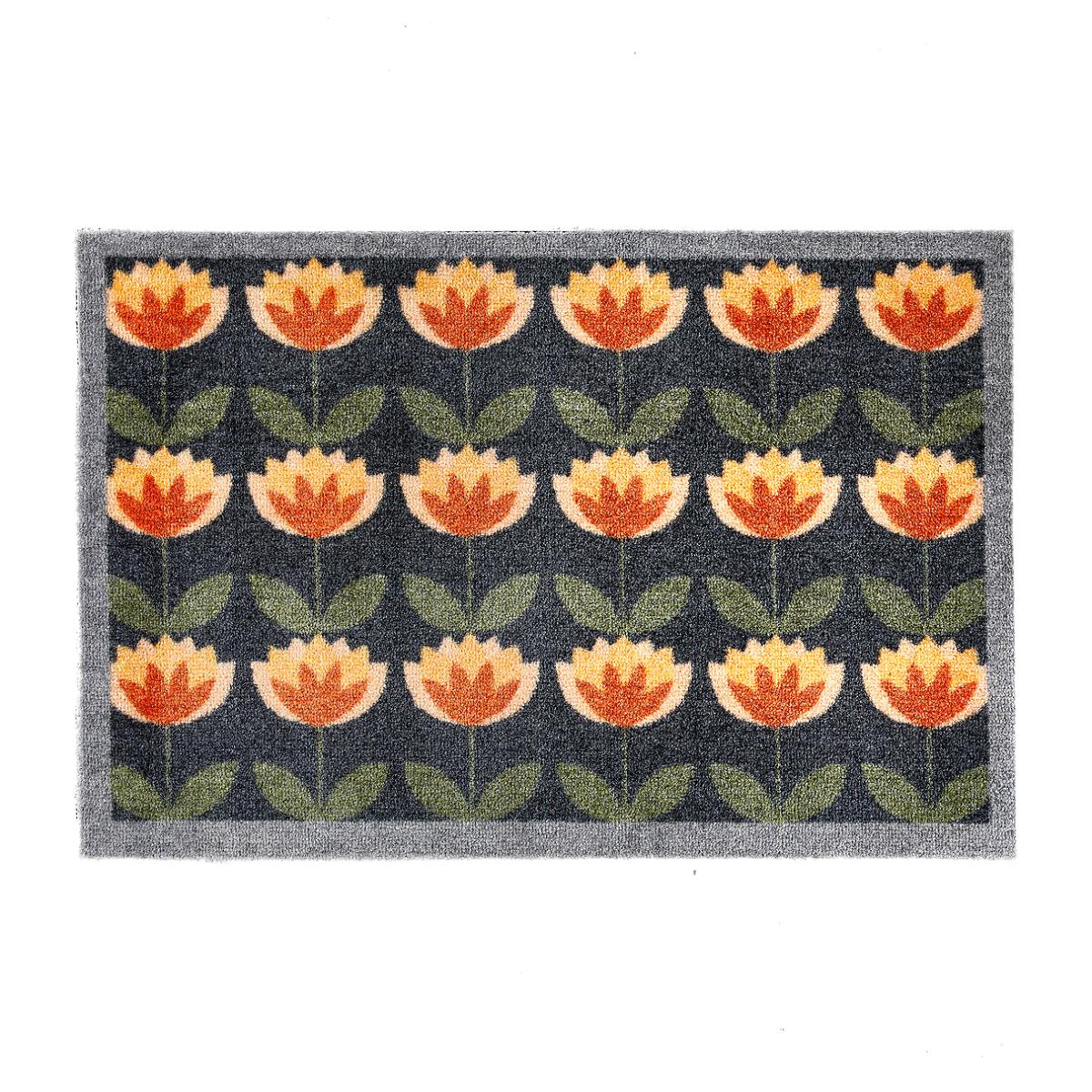 My Mat is the ideal all-purpose indoor runner, that is highly effective at keeping your floors clean. A navy background and grey border this all over pattern of green, orange and yellow flowers, our My Retro Floral design will bring some retro fun into your home. A matching mat is also in the range. This range of brilliant designs and sizes provides easy cleaning and drying properties. With natural stain resistance, My Mats maintain freshness after continuous washes and uses. • Stain resistant with nylon fibres and a non-slip rubber backing.• Traps dirt, dust & mud to protect your flooring.• Absorbent to catch wet muck, before it touches your floor.• Washable at 30°C.• Quick dry.• Made in the UKProduct Dimensions: 75cmx50cm. Composition: Face: Tufted 100% Nylon Fibres, Backing: Rubber backing containing recycled plastics. This product will be dispatched by one of our trusted suppliers. You’ll be contacted by their selected courier about your delivery. PHOEN01