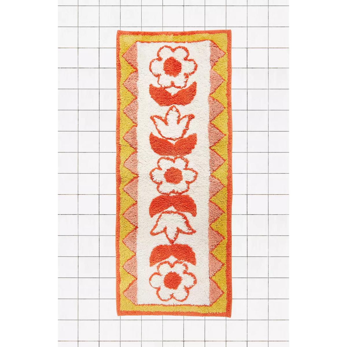 Retro Floral Runner Bath Mat - Pink 45.7cm x 45.7cm at Urban Outfitters