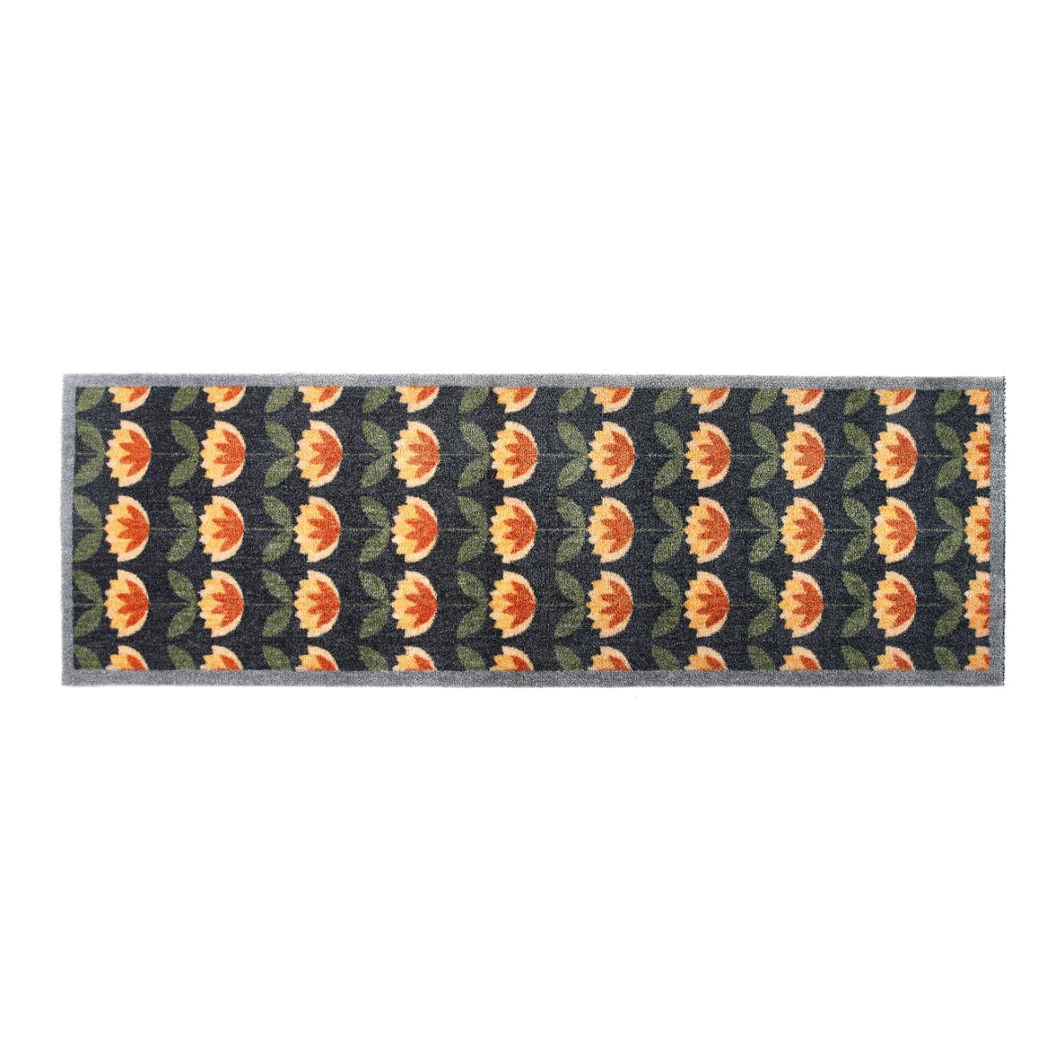 My Mat is the ideal all-purpose indoor mat, that is highly effective at keeping your floors clean. A navy background and grey border this all over pattern of green, orange and yellow flowers, our My Retro Floral design will bring some retro fun into your home. This range of brilliant designs and sizes provides easy cleaning and drying properties. With natural stain resistance, My Mats maintain freshness after continuous washes and uses. • Stain resistant with nylon fibres and a non-slip rubber backing.• Traps dirt, dust & mud to protect your flooring.• Absorbent to catch wet muck, before it touches your floor.• Washable at 30°C.• Quick dry.• Made in the UKProduct Dimensions: 150cmx50cm. Composition: Face: Tufted 100% Nylon Fibres, Backing: Rubber backing containing recycled plastics. This product will be dispatched by one of our trusted suppliers. You’ll be contacted by their selected courier about your delivery. PHOEN01