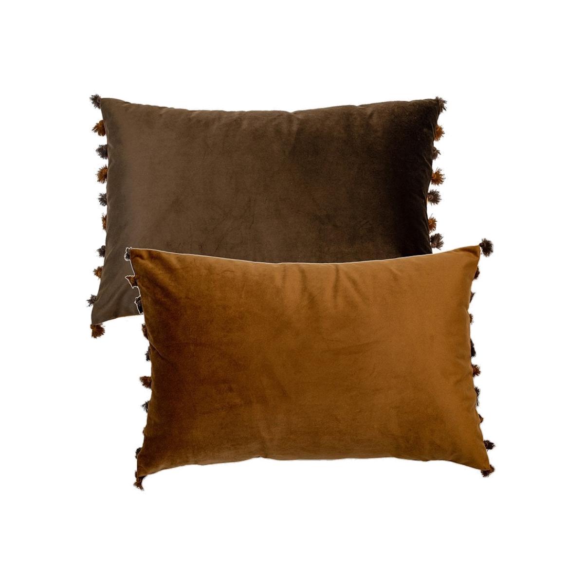 Retro Fringed Velvet Cushion, Coffee Brown & Tan