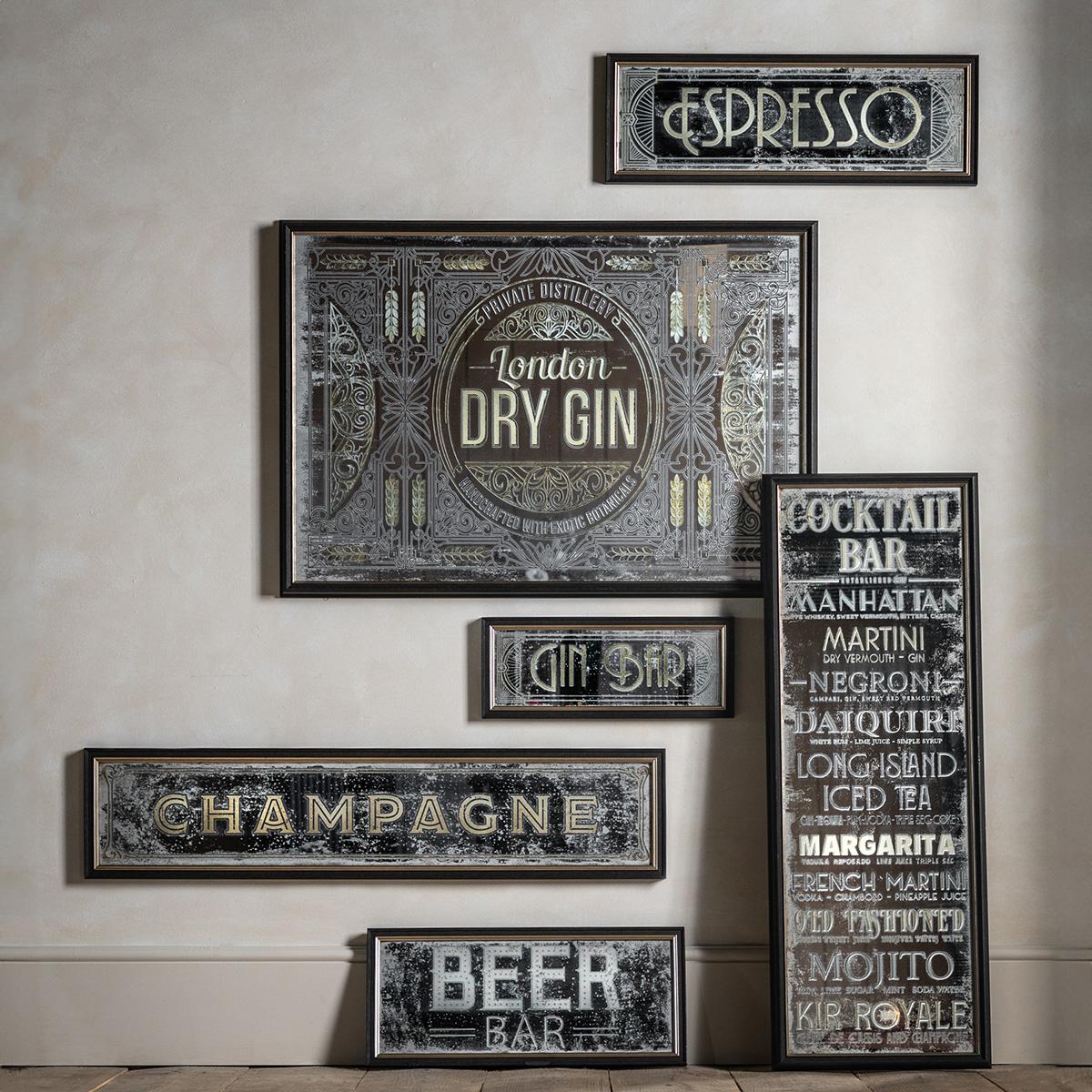 Add some retro charm into your home with the Retro Gin Mirror. With a distressed mirrored background, this piece is inspired by the Art Deco movement, perfect for creating that nostalgic ambiance in your kitchen, bar or entertainment area.