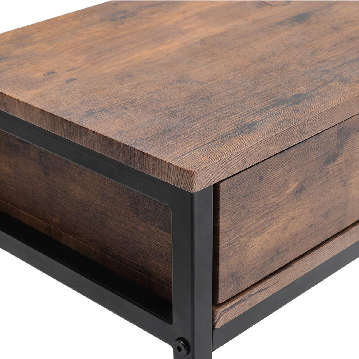 Industrial style design side table, Made of wood and powder-coated metal frame, stylish and fashionable design is compatible seamlessly with any room decor and also adds a touch of elegant charm to your room. It is a simple but strong structure as legs could provide additional stability, which is enough for long-term use. Ideal for complementary pieces for any industrial or modern living room or office area.