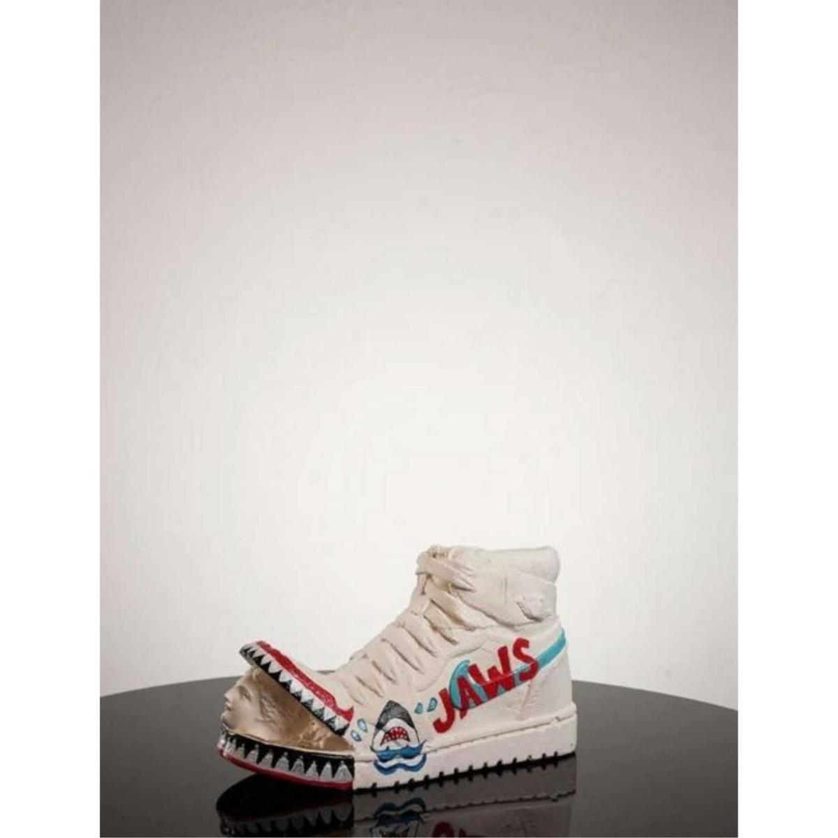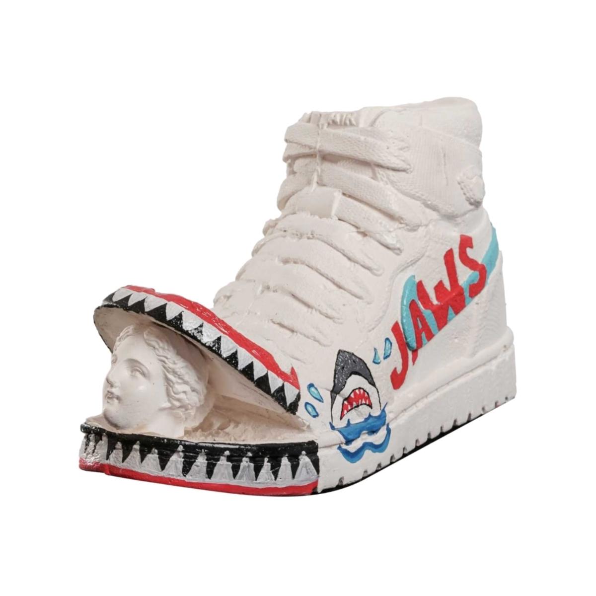 Hey, you’re gonna need a bigger boat... Embrace your inner 80s movie fan with this Jaws Nike Shoes. With a mixture of the classic Spielberg film and classic Nike sneakers, this shoe ornament will add some funky atmosphere to any home or desk. This design features a classic Jaws sneaker opening up with a surprise inside. Perfect for anyone who grew up in the 1980s and wants to show their passion.