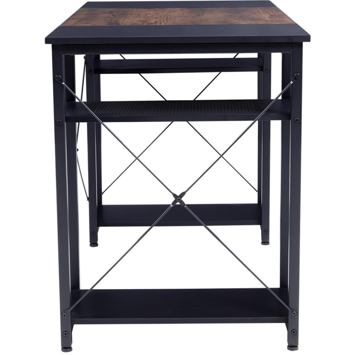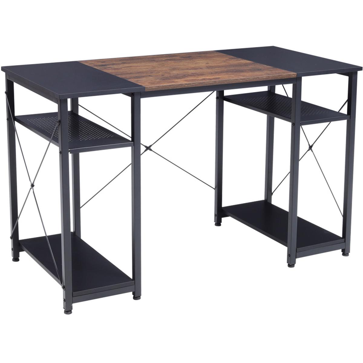 Retro Laptop PC Computer Desk With Side Shelves - Brown / 140cm