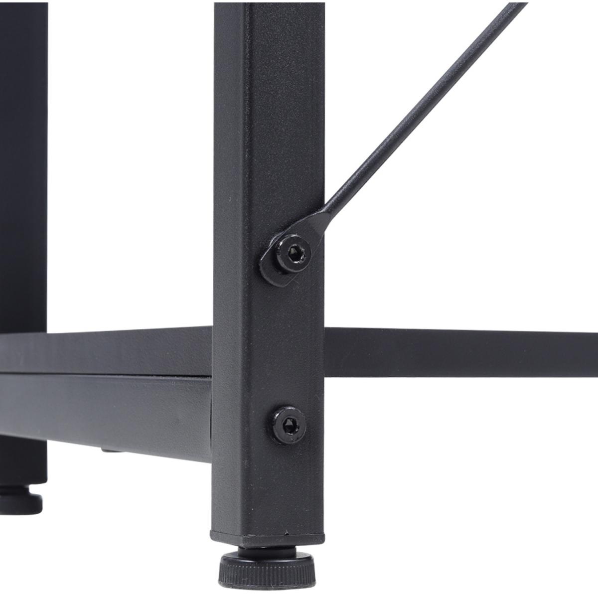 I love how this 140 cm-wide retro desk combines a slim black metal frame with a warm brown top, making it equally at home in an industrial-inspired loft or a mid-century modern study. The open side shelves keep your workspace feeling light while offering practical storage for books, stationery or a desktop PC tower. For styling, group a mix of woven baskets and a handful of books on the lower shelves to minimise visual clutter, then reserve the top tier for a small plant or a statement lamp. Pair it with a simple upholstered office chair in a muted colour and, if you need extra wall storage, add a slim pegboard or floating shelf above the desk to keep the surface clear.