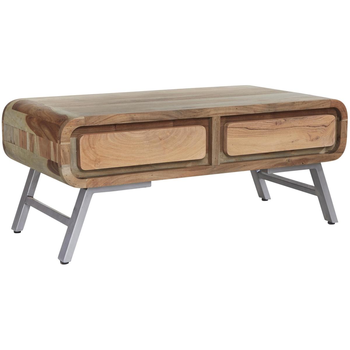 Retro Metal and Acacia Wood Coffee Table - Two-Tone