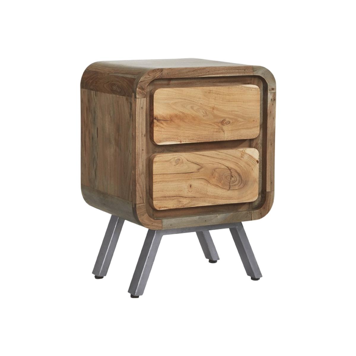 Retro Metal and Wood 2 Drawer Bed Side Table - Brown