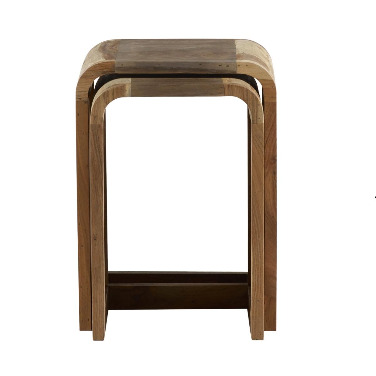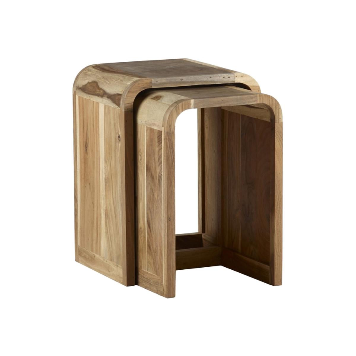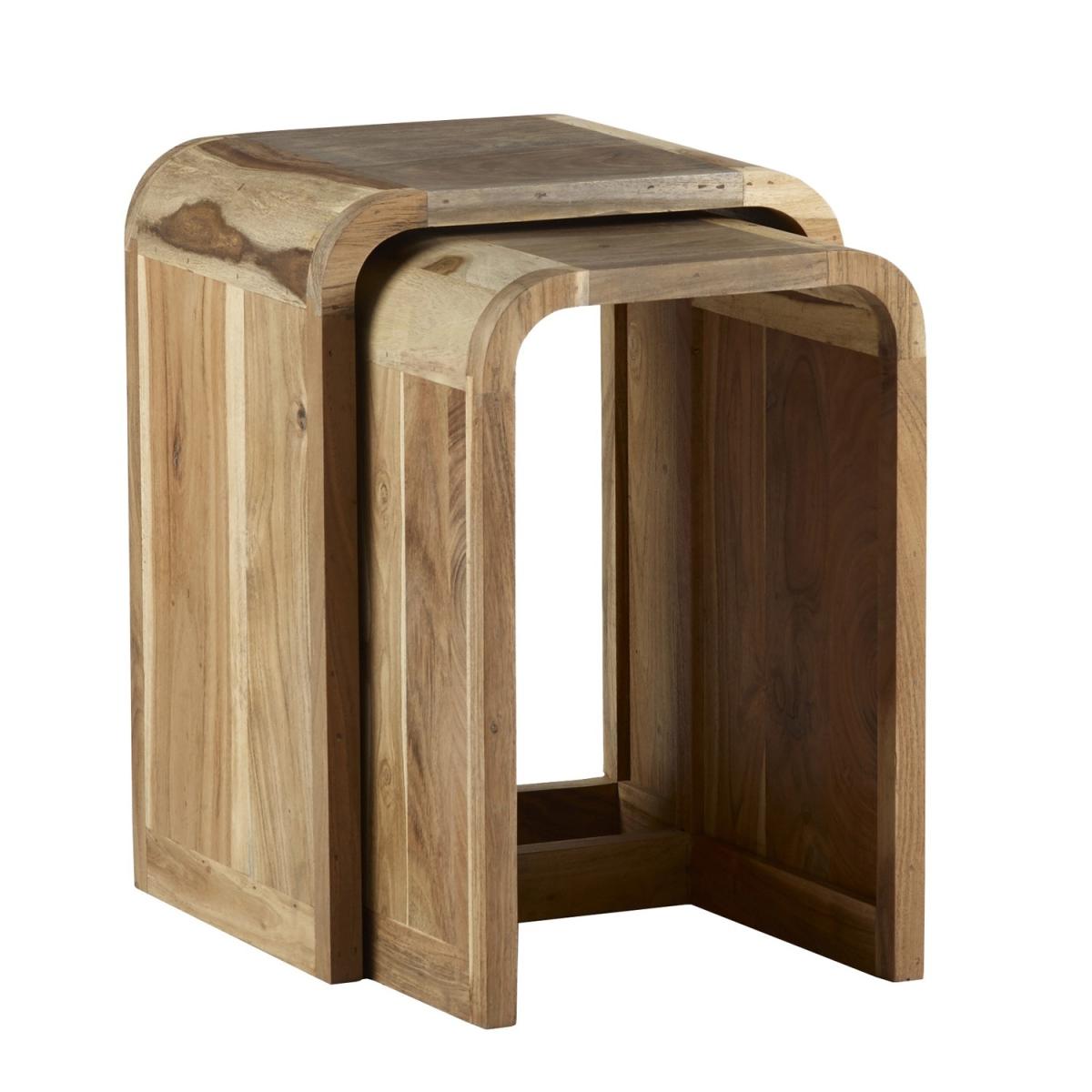 Made entirely from Solid Acacia Wood, this nest of tables comes with a warm design and look thanks to its curved lines and 2 tone colour. The Nest of Tables is a practical piece of furniture and a space saver at the same time as when not needed, each table can be tucked away under the other.