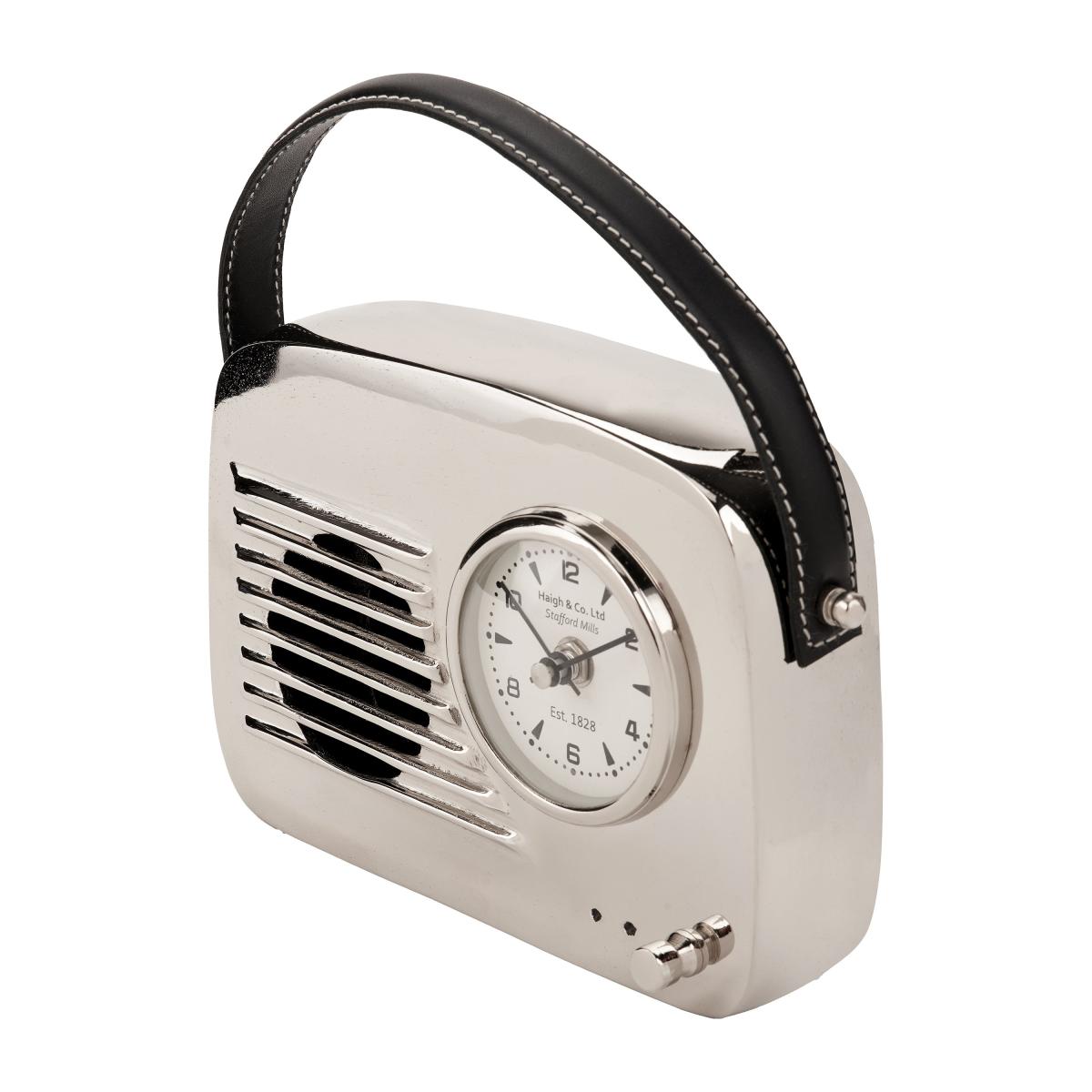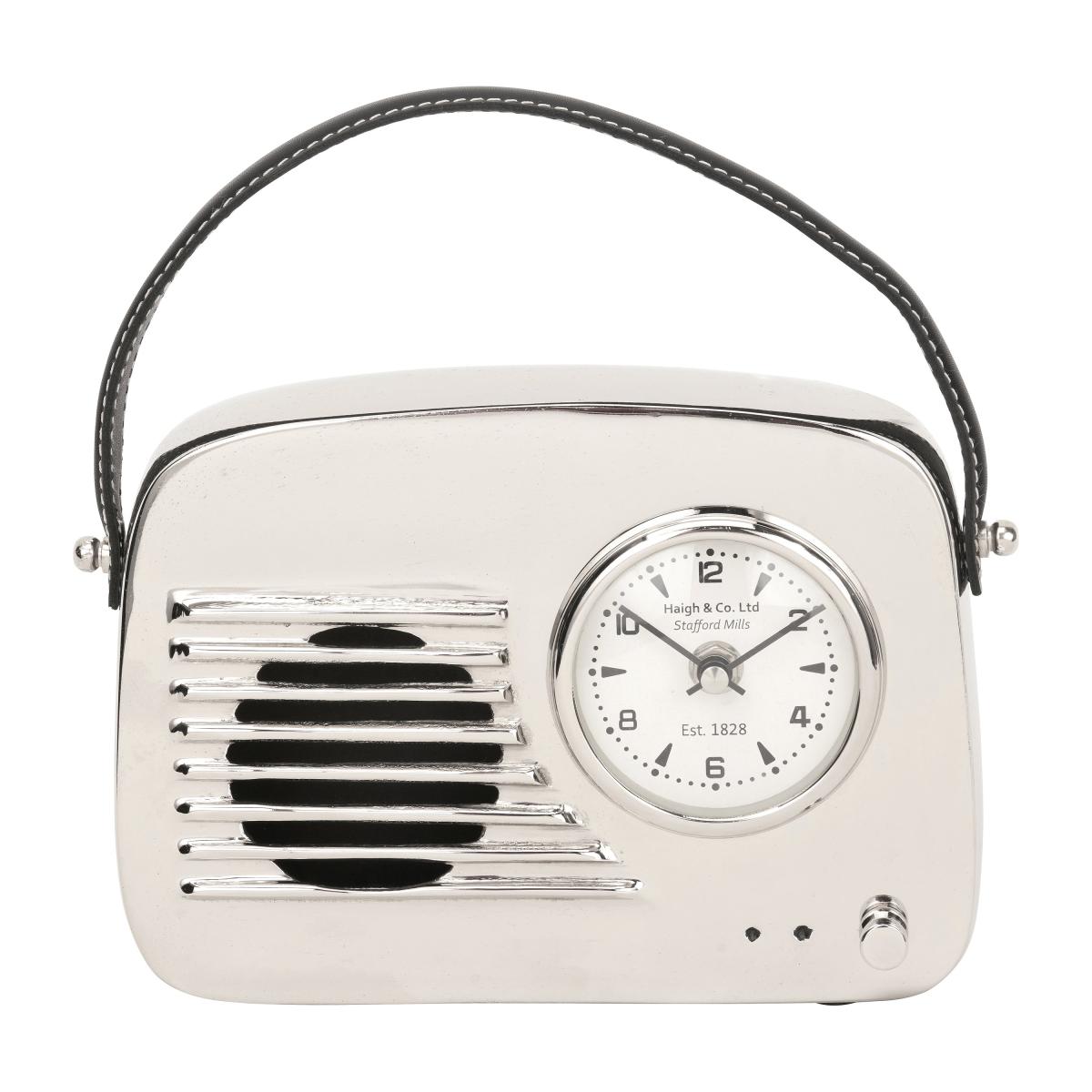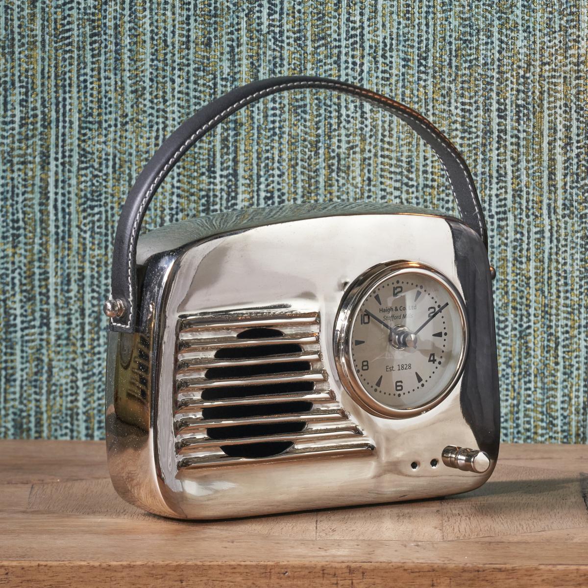 I love this retro radio-inspired clock for its nostalgic charm and compact design. It works well in eclectic or vintage-inspired interiors, adding a touch of personality without overwhelming the space. Practical styling tips include pairing it with other metallic or leather accents to create a cohesive look, or placing it on a bedside table or open shelf where its quirky design can stand out. Its silver finish and leather strap give it versatility, making it suitable for both modern and classic interiors that incorporate vintage elements.