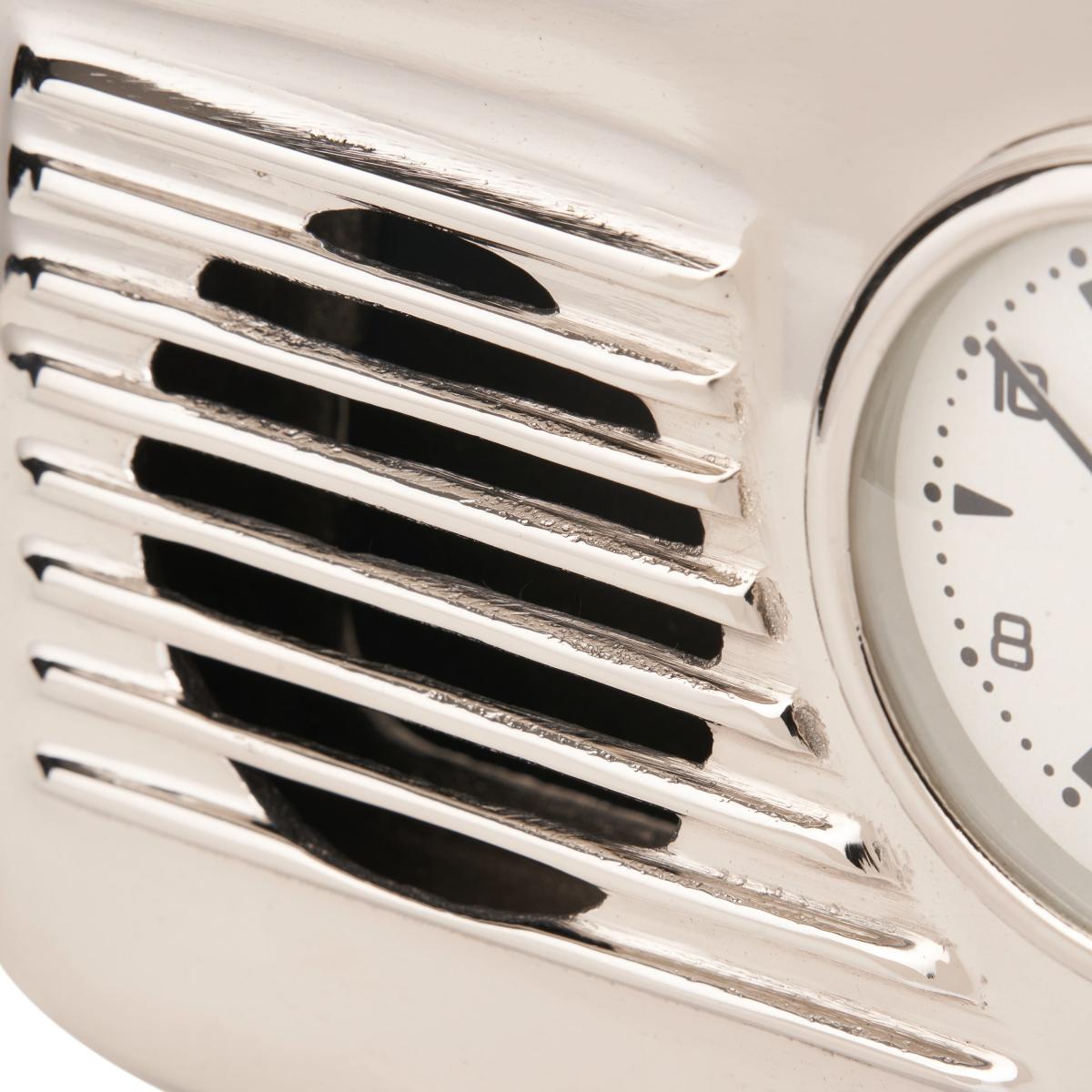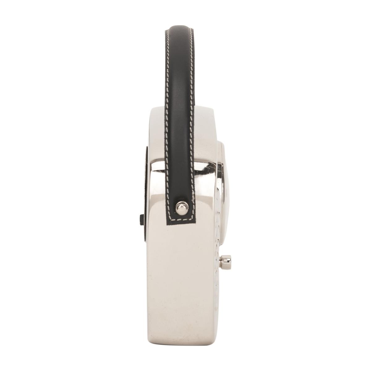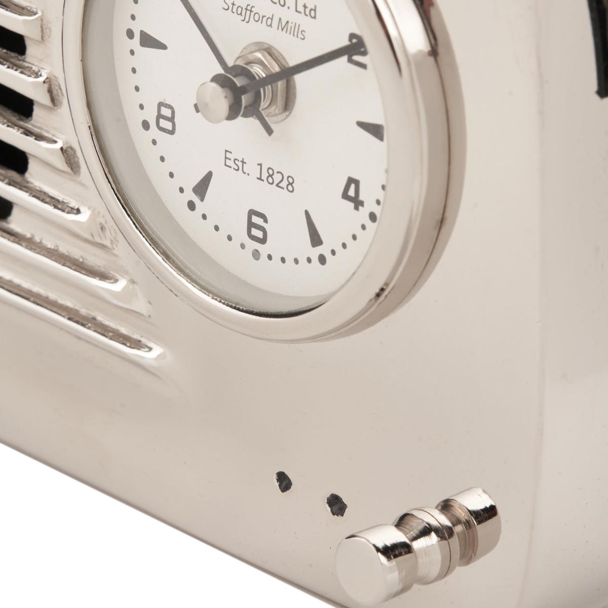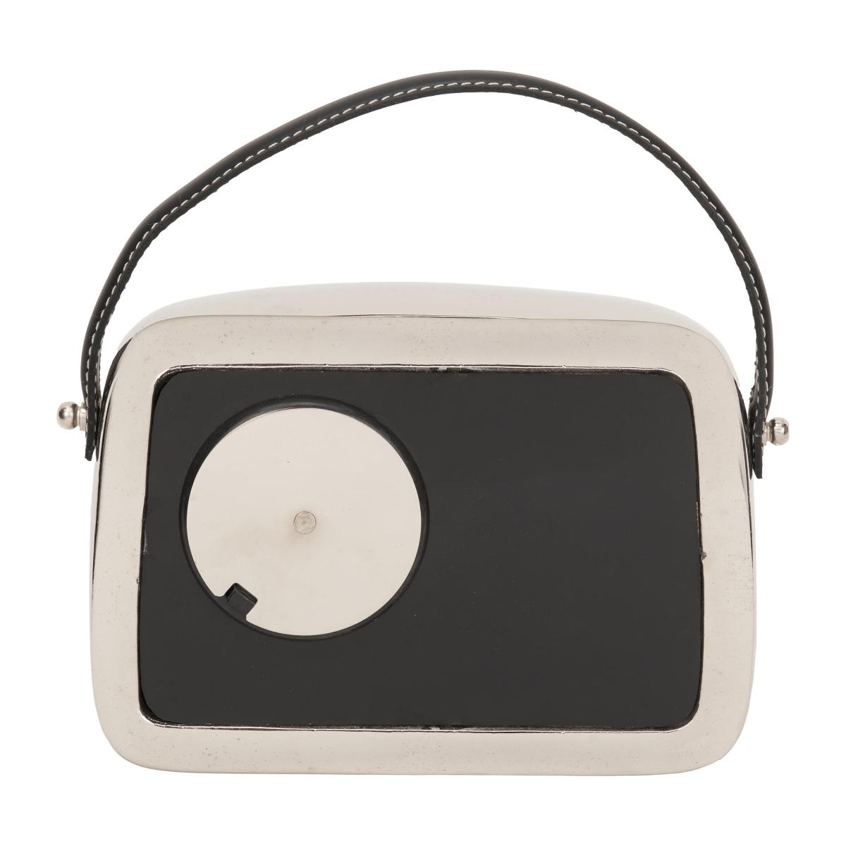 I love this retro radio-inspired clock for its nostalgic charm and compact design. It works well in eclectic or vintage-inspired interiors, adding a touch of personality without overwhelming the space. Practical styling tips include pairing it with other metallic or leather accents to create a cohesive look, or placing it on a bedside table or open shelf where its quirky design can stand out. Its silver finish and leather strap give it versatility, making it suitable for both modern and classic interiors that incorporate vintage elements.
