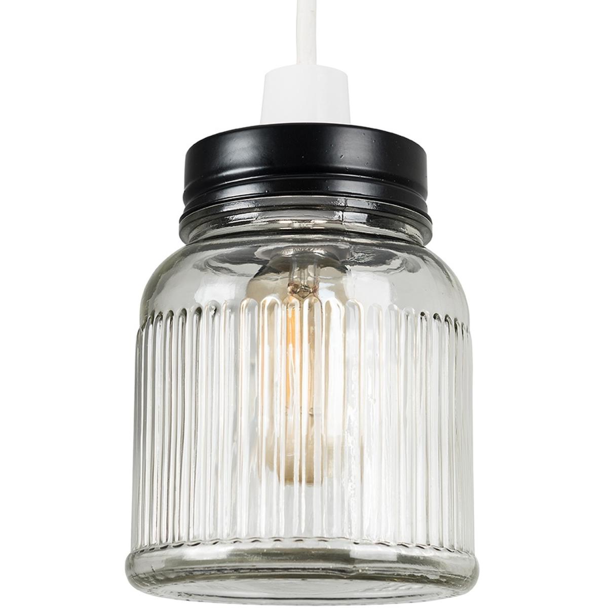Retro Style Clear Glass Ribbed Design Jar Ceiling Pendant Light Shade - Black