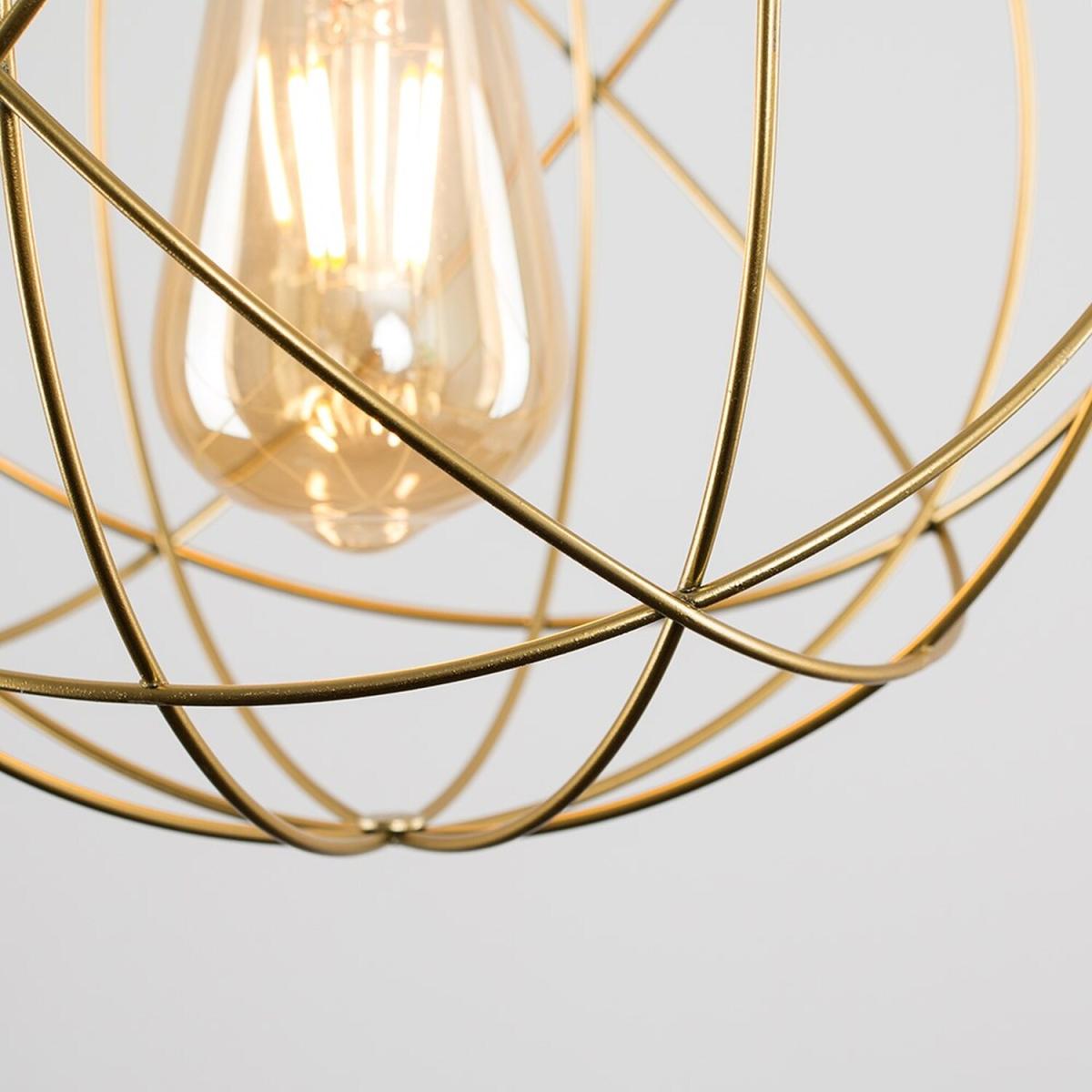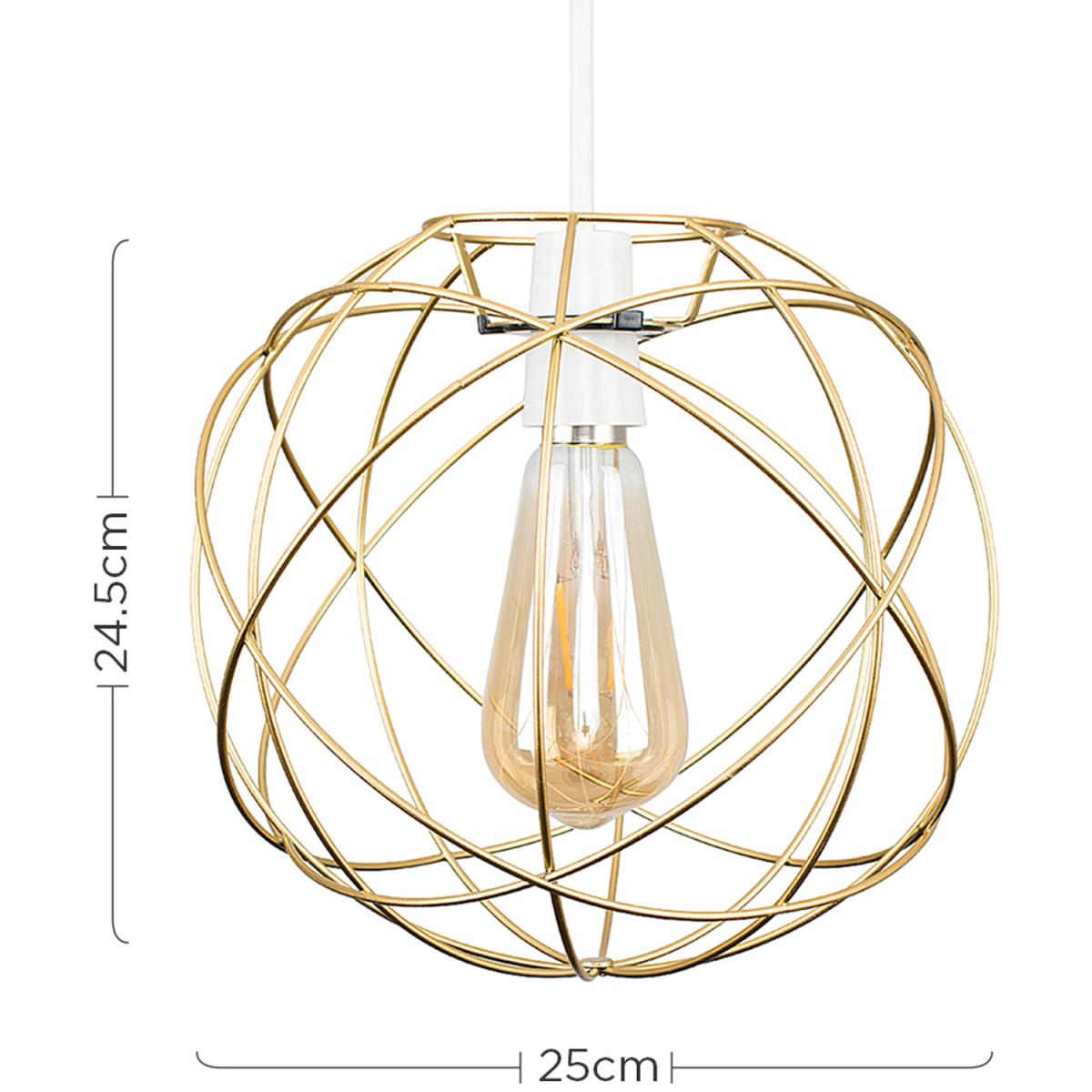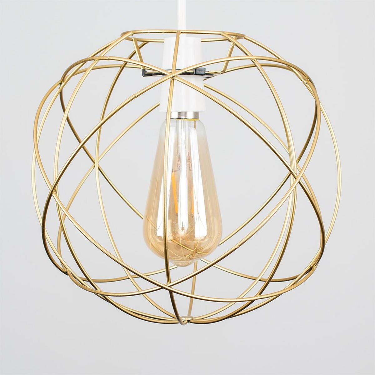 Retro style atom design ceiling pendant light shade in a gold effect metal finish. Features an open design which shades the bulb whilst allowing light to disperse effectively and evenly throughout the room. Ideal for lounges, dining rooms, bedrooms and hallways. Ceiling lights are usually the main source of illuminating a room but with the many styles on offer today, also become a main focal point or talking point. The right fitting can make a real style statement and complete your living space look.