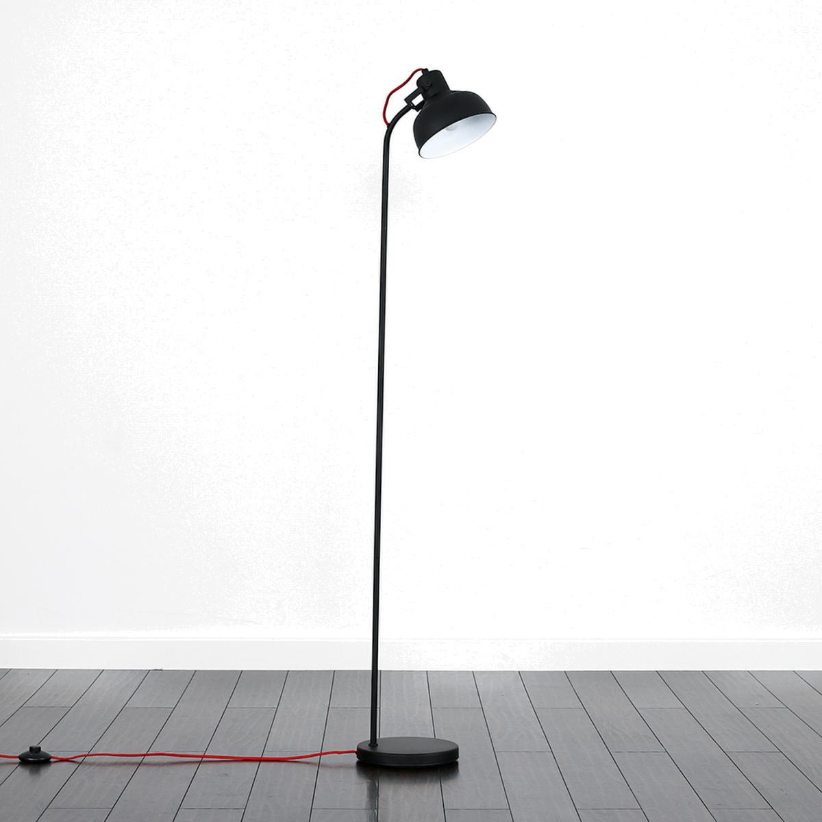 This floor lamp in a matt black metal finish is everything you need to transform your ordinary room into an example of modern interior design. Features a dome shaped shade and a red flex to disguise unattractive wires. This floor lamp is perfect for any home or work space to add extra light where required.
