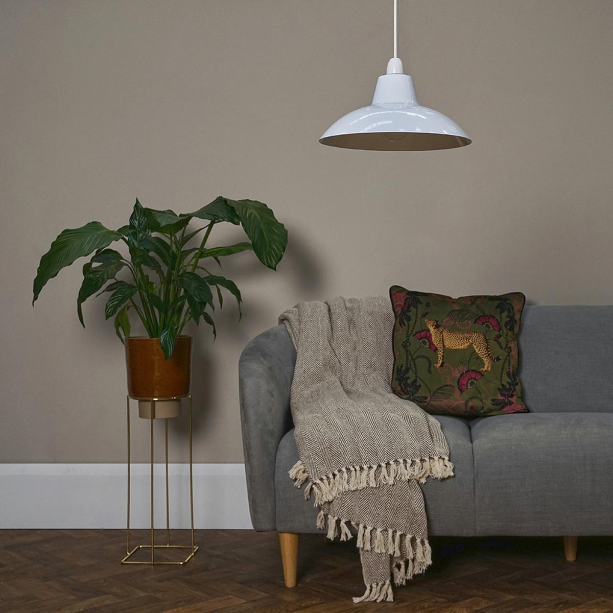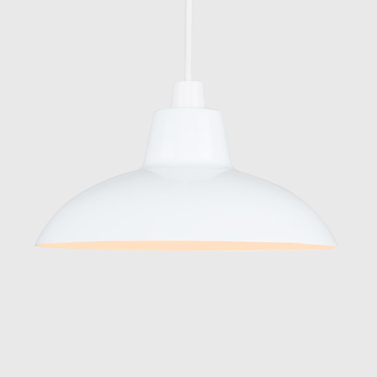 Retro style ceiling lampshade. This modern ceiling light comes in a gloss white finish giving this classic design a contemporary twist. Ideal for the lounge, dining area, bedrooms, hallways and kitchen. Simply fits to an existing ceiling cord, so no electrician required!