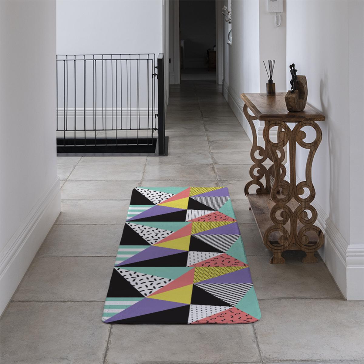 I love this retro-inspired geometric runner rug for injecting a dose of colour and bold pattern into a space. It works particularly well in modern or eclectic interiors, where it can serve as a statement piece or a colourful accent alongside neutral furnishings. Practical styling tips include pairing it with minimalist furniture to let it stand out, or layering it with plain runners or runners in complementary shades for a more curated look. It’s also ideal for hallways or narrow spaces, as it adds visual interest without overwhelming. Just keep an eye on wear in high-traffic areas and consider a non-slip underlay for extra safety.