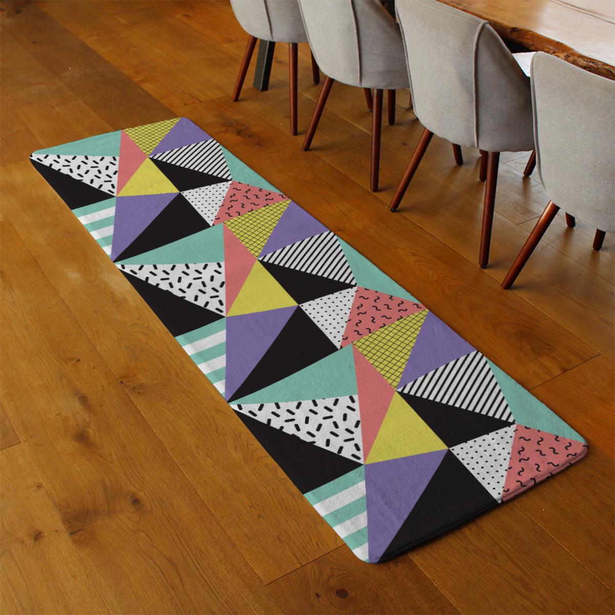 Retro Themed Geometrics Runner Rug - Blue