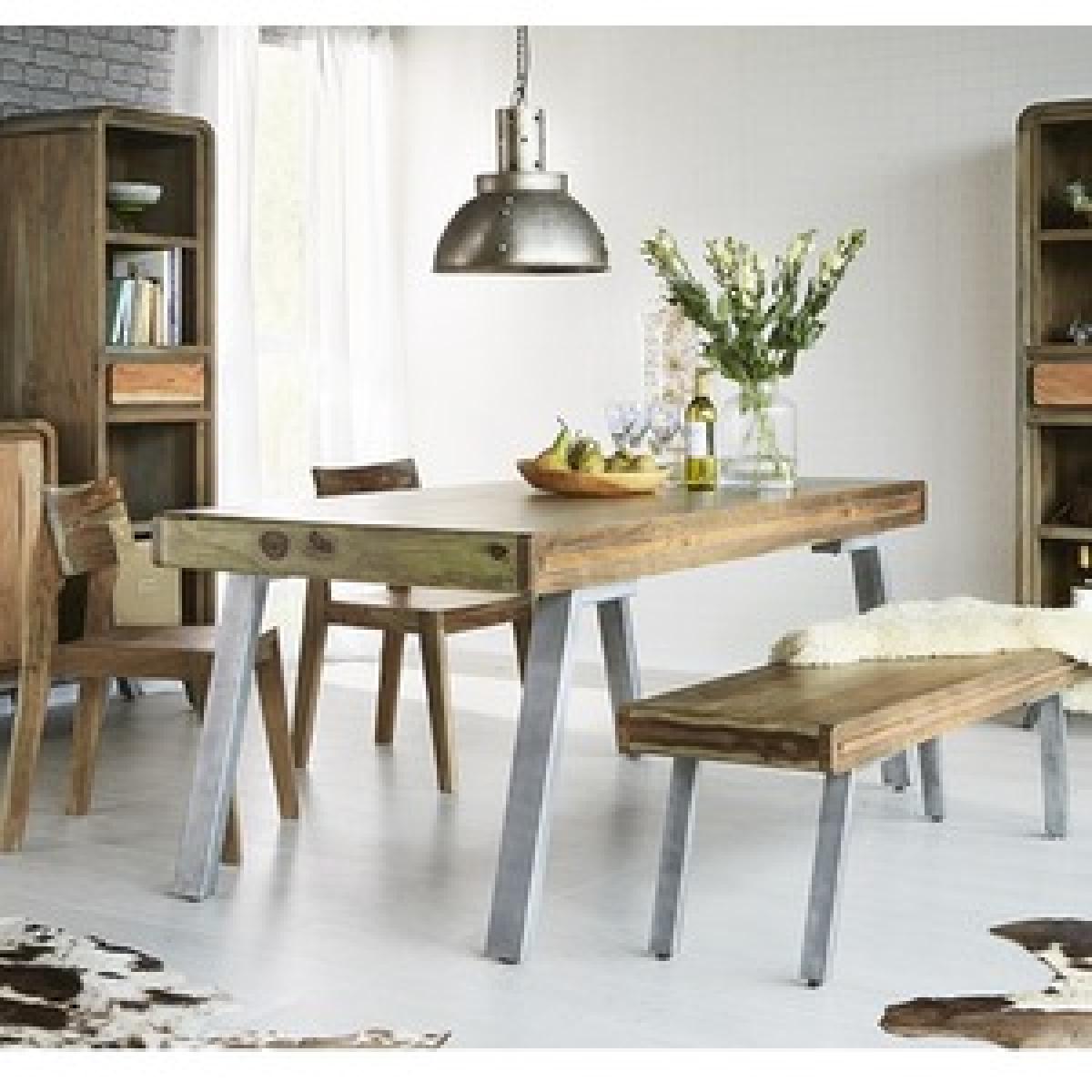I’m a big fan of this two-tone wood and metal dining table for its clean lines and sturdy feel - the warm reclaimed-wood top softens the cool metal legs, making it equally at home in a modern industrial loft or a Scandi-inspired kitchen. The generous size means you can comfortably seat six to eight, and the neutral tones lend themselves to both pared-back styling and bolder accent colours. To style it, I’d keep the tabletop clutter-free and introduce contrast with a slim runner or a couple of statement candlesticks. Pair it with simple dining chairs in leather or painted metal, then hang a low-slung pendant light above to create a focal point. If you need extra storage, a low sideboard in a complementary wood finish helps to balance the look while keeping the space practical.