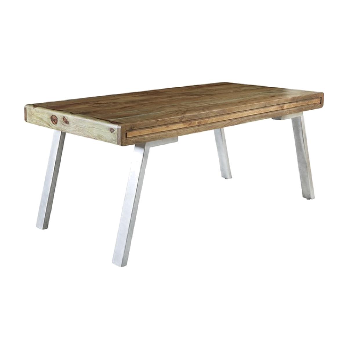 Handcrafted by skilled craftsmen in India this range offers a new dimension to furniture making combining solid hardwood with reclaimed metal. The range is eco friendly, modern and versatile. Made from 100 % solid hardwood and reclaimed metal acacia solid hardwood wood featuring two-tone colour with natural finish on the front and drawers and light grey on the sides versatile and modern range giving retro look.