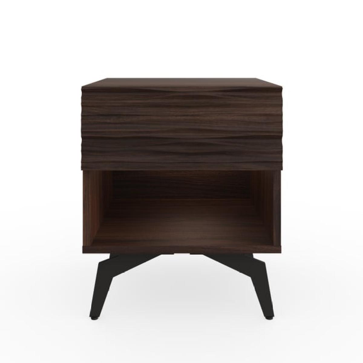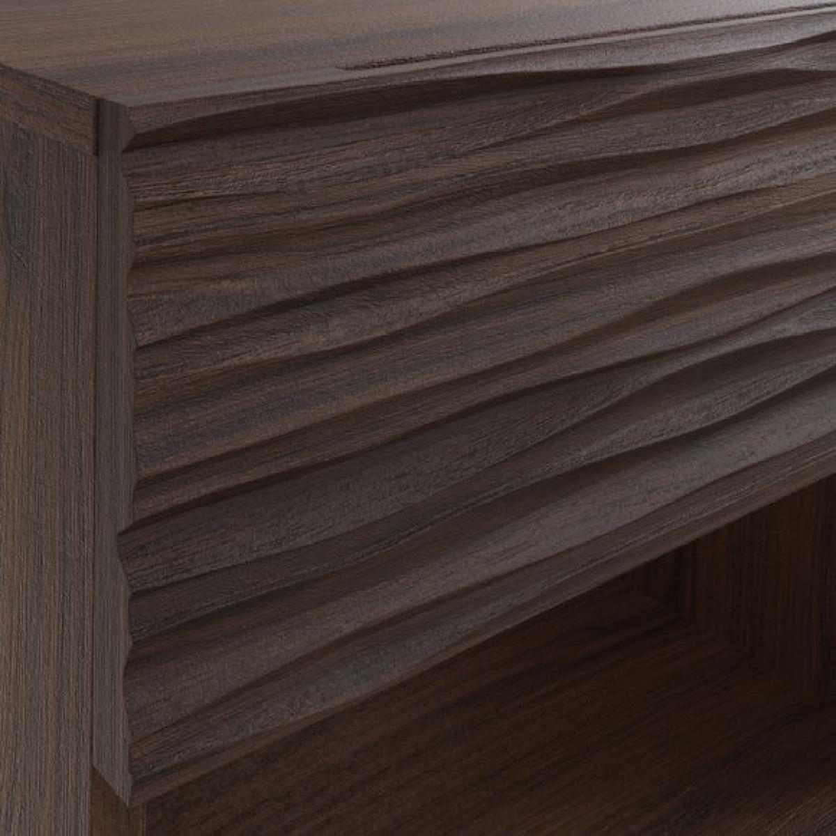This product is priced at 10% less than a brand new model. Brand new price is £79. Returned product price is £71.10 Saving of £7.90. This is a returned item. It has previously been ordered, dispatched, cancelled and collected from our customers and then fully checked by our expert team to ensure that it is in 100% tip top condition and fully packaged. It was cancelled upon delivery and has therefore never been used. However, because this line is not strictly 'new', we have discounted it to clear! * Dark walnut * Wave textured front * Large drawer and shelf This table's classic cuboid form adds a touch of modern sophistication to any space. Perfectly sized for a lamp and books, it features integrated finger pulls, blending functionality and style effortlessly.