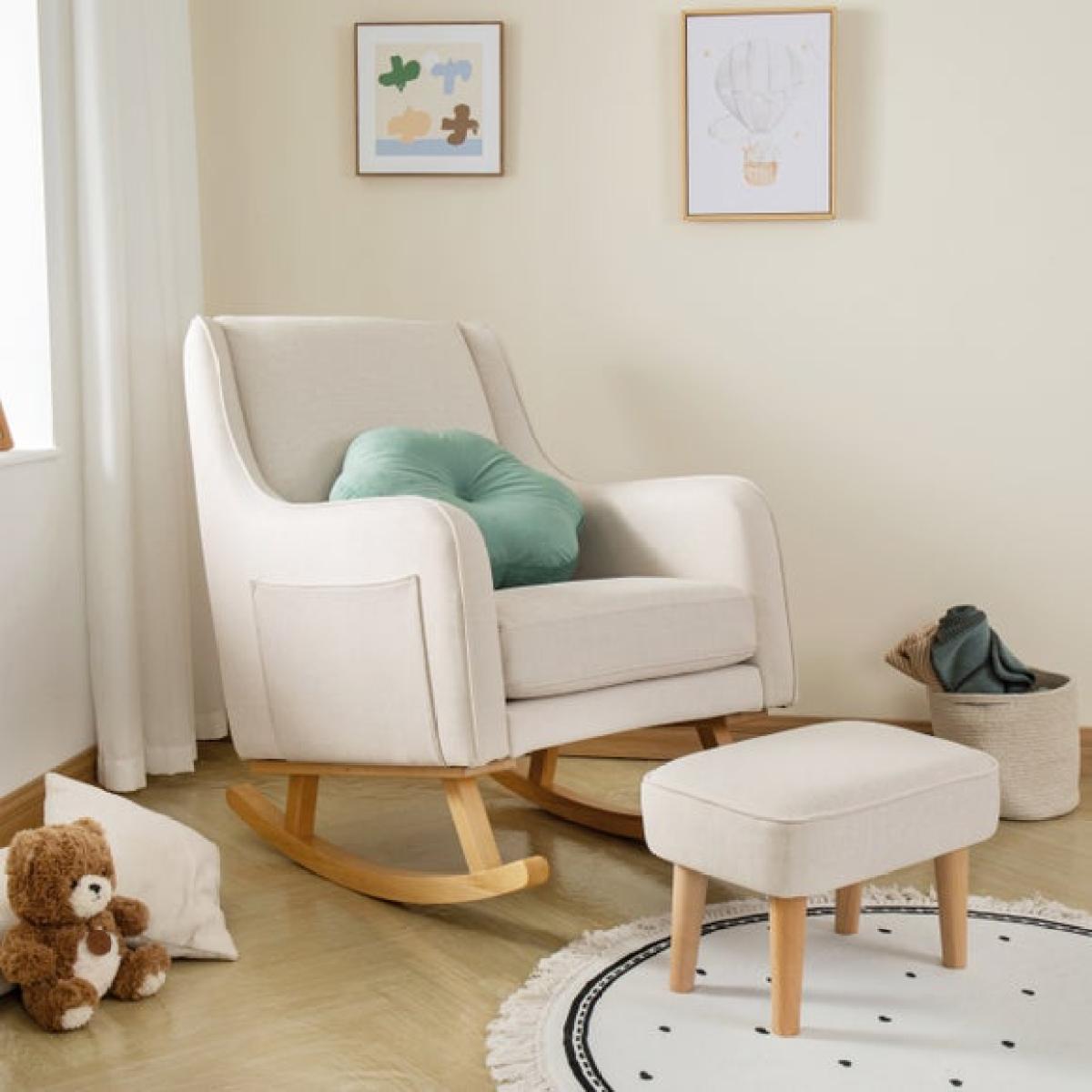 This product is priced at 10% less than a brand new model. Brand new price is £329. Returned product price is £296.10. Saving of £32.90. This is a returned item. It has previously been ordered, dispatched, cancelled and collected from our customers and then fully checked by our expert team to ensure that it is in 100% tip top condition and fully packaged. It was cancelled upon delivery and has therefore never been used. However, because this line is not strictly 'new', we have discounted it to clear!* Soft upholstery* Wooden legs* Matching stool* Storage pockets The Ida Nursing Chair offers both comfort and practicality with its soft, supportive design. Complete with a matching footstool, this chair is perfect for relaxation and bonding time. Two handy storage pockets provide convenient space for keeping essentials close at hand.