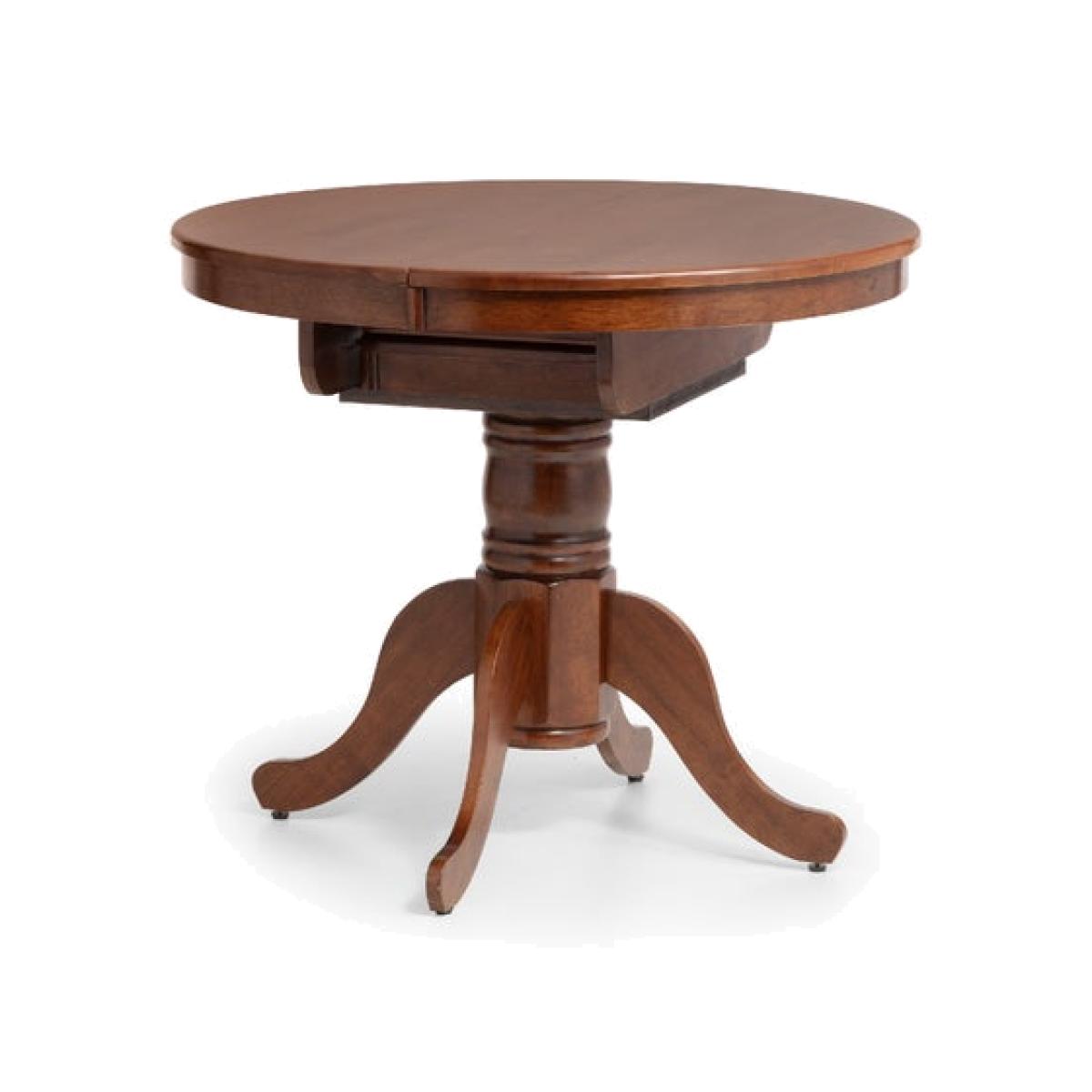 This product is priced at 10% less than a brand new model. Brand new price is £335. Returned product price is £301.50. Saving of £33.50. This is a returned item. It has previously been ordered, dispatched, cancelled and collected from our customers and then fully checked by our expert team to ensure that it is in 100% tip top condition and fully packaged. It was cancelled upon delivery and has therefore never been used. However, because this line is not strictly 'new', we have discounted it to clear! * Extendable table * Constructed from Rubberwood * Pedestal base * Mahogany lacquered finish Furnish your dining area with this traditional style dining table for a sturdy and sophisticated addition to your home. Crafted from rubberwood with a mahogany lacquered finish, this table can transform from a 90cm round shape, to an extended 120cm oval shape, bringing a versatile and convenient space saving design to smaller homes or dining areas.