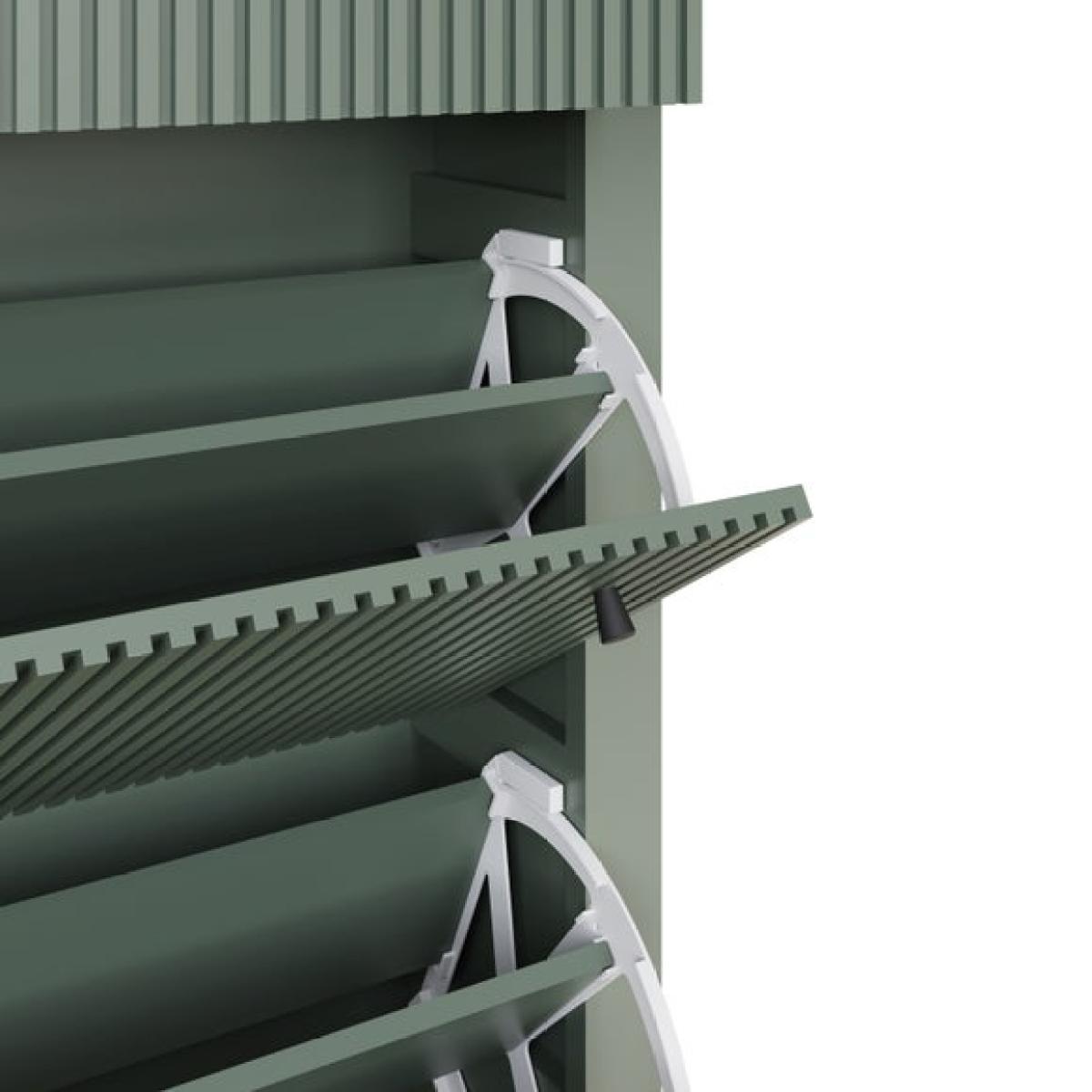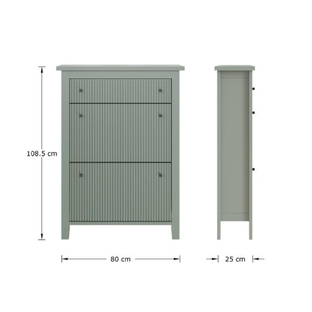 This product is priced at 10% less than a brand new model. Brand new price is £119. Returned product price is £107.10. Saving of £11.90. This is a returned item. It has previously been ordered, dispatched, cancelled and collected from our customers and then fully checked by our expert team to ensure that it is in 100% tip top condition and fully packaged. It was cancelled upon delivery and has therefore never been used. However, because this line is not strictly 'new', we have discounted it to clear!* Slim hallway storage* 12 shoe compartments* Ribbed front effect Keep your home tidy and organised with this stylish shoe cabinet, designed to tackle hallway clutter with ease. The eye-catching ribbed front adds a contemporary touch, making it a statement piece for any entranceway or hallway. With space to store up to twelve pairs of shoes behind its two drop-down doors, and a handy top drawer for smaller essentials, this cabinet is both practical and elegant.