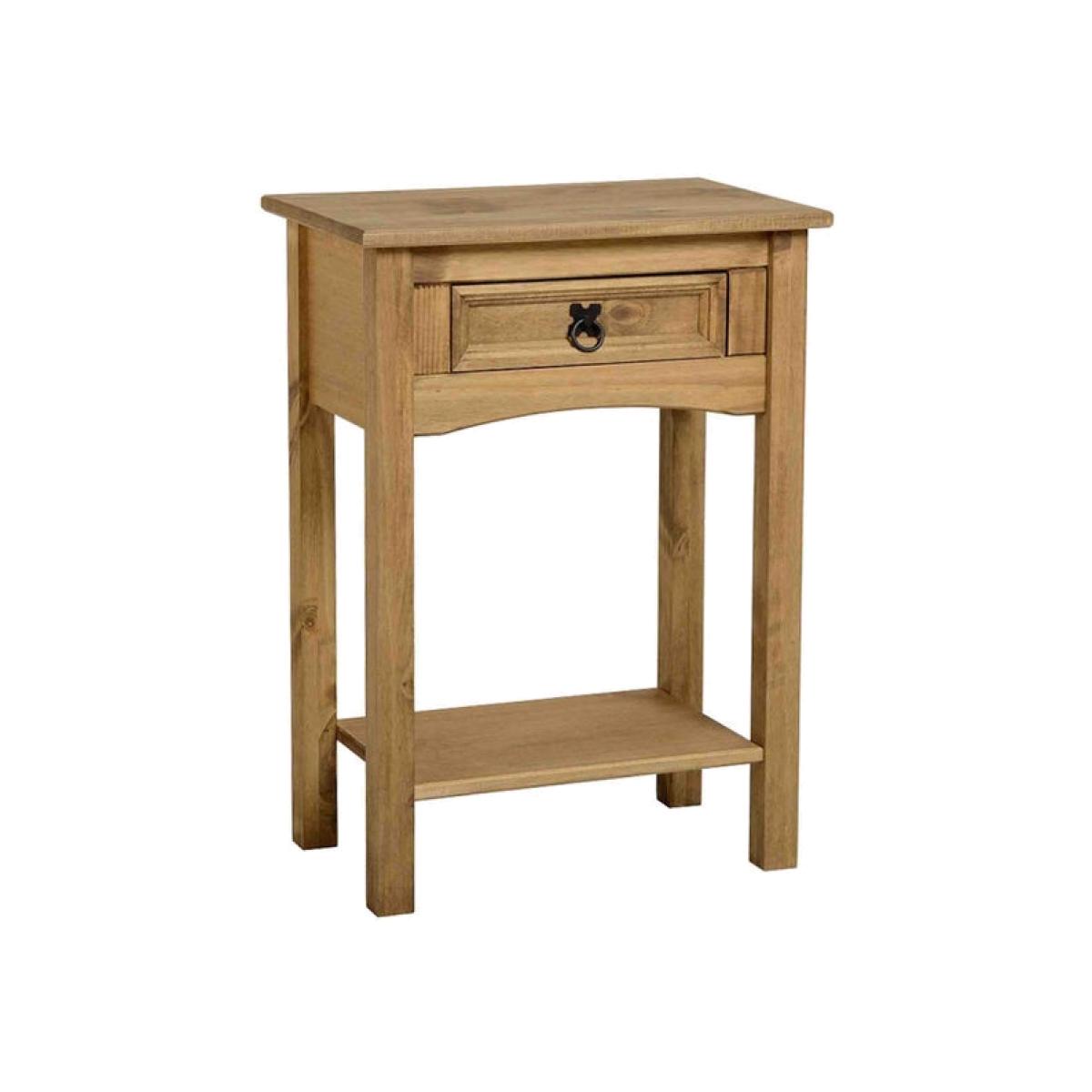This product is priced at 30% less than a brand new model. Brand new price is £69. Returned product price is £62.10. Saving of £6.90. This is a returned item. It has previously been ordered, dispatched, cancelled and collected from our customers and then fully checked by our expert team to ensure that it is in 100% tip top condition and fully packaged. It was cancelled upon delivery and has therefore never been used. However, because this line is not strictly 'new', we have discounted it to clear!The Seconique Corona 1 Drawer Console Table with Shelf boasts a beautiful distressed waxed pine finish that will bring a whole new look to your home. The attractive design with metal drop handles and the rich colour of the wood make it a superb piece of furniture to look at that is also highly functional. With a spacious drawer, there's plenty of room to store your belongings. Please note, unfortunately we cannot deliver this item to the Channel Islands.