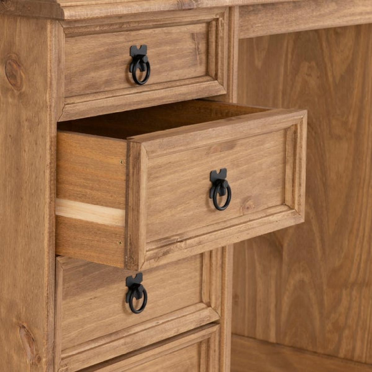 This product is priced at 10% less than a brand new model. Brand new price is £129. Returned product price is £116.10. Saving of £12.90. This is a returned item. It has previously been ordered, dispatched, cancelled and collected from our customers and then fully checked by our expert team to ensure that it is in 100% tip top condition and fully packaged. It was cancelled upon delivery and has therefore never been used. However, because this line is not strictly 'new', we have discounted it to clear!Offering style and excellent value for money the Corona Dressing Table will be the perfect addition to any bedroom. This dressing table is crafted from beautiful Mexican Pine and is protected with light wax while the metal fittings complement this rustic design. The four drawers will offer offer spacious storage space for those smaller bedroom items and features a larger bottom drawer. Please note, unfortunately we cannot deliver this item to the Channel Islands.