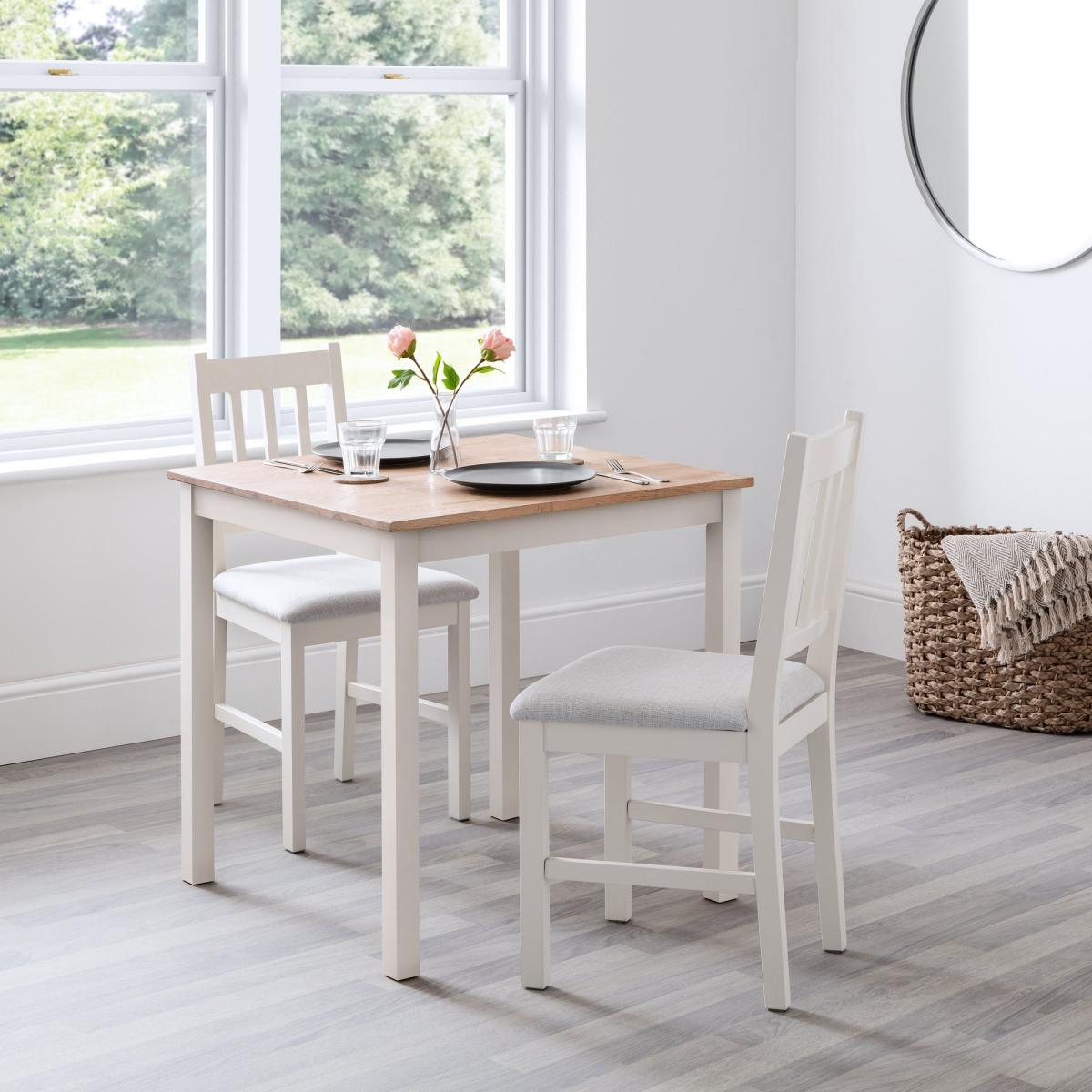 * Solid oak construction * Durable oiled finish * White painted legs * Sits up to 4 people Add the finishing touch to your dining room with this Coxmoor Dining Table. This dining table is made from solid oak with an oiled finish for a durable and stylish look for years on end, the timeless look is one that both you and your guests will love.