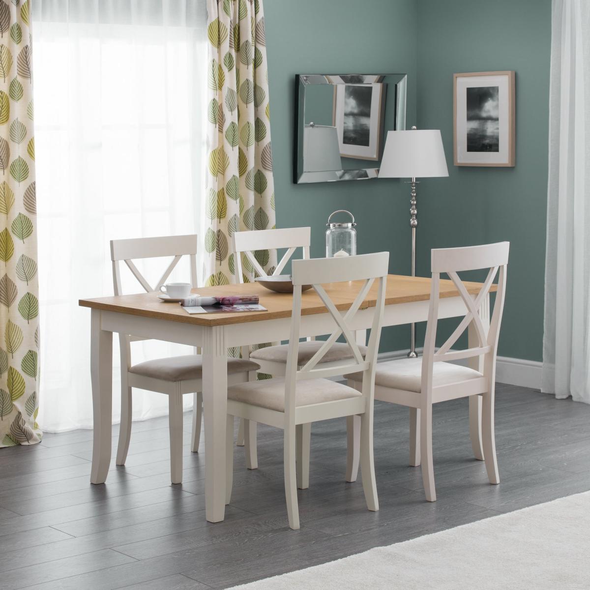 * Solid rubberwood and oak veneer * Grey lacquered finish * Classic, timeless look * Seats up to 4 people Dine in style, every night is a night at the cosiest restaurant with this Davenport Dining Table set. The oak effect table paired with the classically designed dining chairs creates a look that exudes comfort, you'll be obsessed with hosting dinner parties as a reason to have guests over to admire your set up!