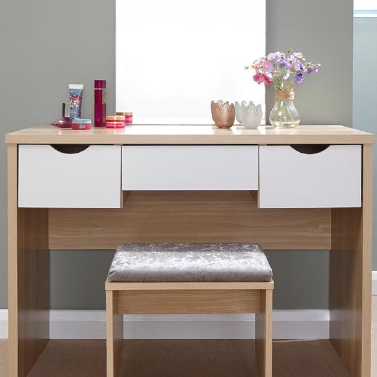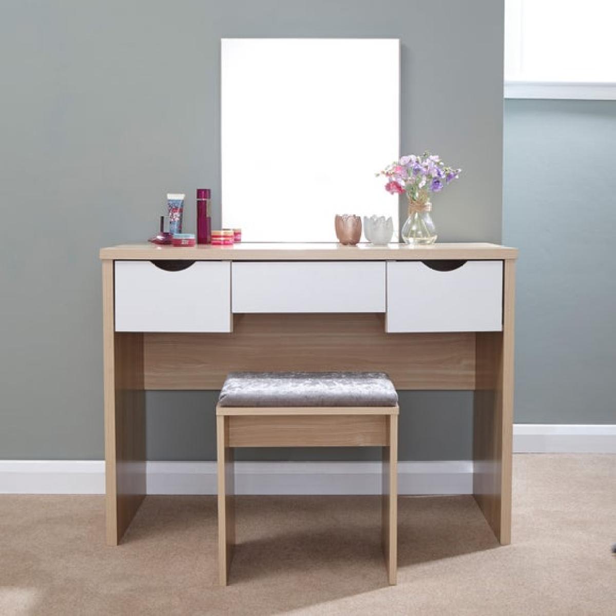 This product is priced at 10% less than a brand new model. Brand new price is £129. Returned product price is £116.10. Saving of £12.90. This is a returned item. It has previously been ordered, dispatched, cancelled and collected from our customers and then fully checked by our expert team to ensure that it is in 100% tip top condition and fully packaged. It was cancelled upon delivery and has therefore never been used. However, because this line is not strictly 'new', we have discounted it to clear! Perfect for any modern bedroom style, the contemporary Elizabeth dressing table set features three spacious drawers, offering plenty of useful storage space. This self-assembly set includes the dressing table as well as a fixed edgeless mirror and a matching crushed velvet look padded stool. Do not use solvent based cleaners or detergents as they can bleach or damage the product.