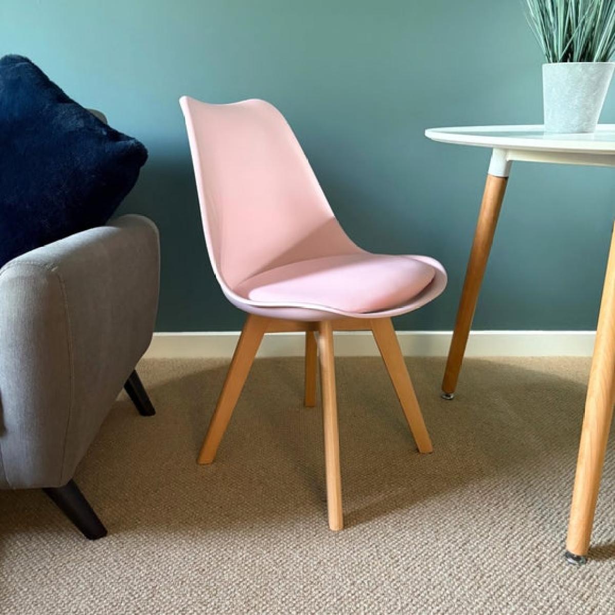 This product is priced at 10% less than a brand new model. Brand new price is £69. Returned product price is £62.10. Saving of £6.90. This is a returned item. It has previously been ordered, dispatched, cancelled and collected from our customers and then fully checked by our expert team to ensure that it is in 100% tip top condition and fully packaged. It was cancelled upon delivery and has therefore never been used. However, because this line is not strictly 'new', we have discounted it to clear! * Removable seat pad * Comfortable and durable * Easy to wipe clean with a damp cloth * Available in a variety of colours * Simple assembly with easy-to-follow instructions This dining chair is a standout piece from a collection of colorful, contemporary dining chairs. Featuring four squared, natural beech wood legs, this chair combines style with sturdiness. Whether you’re enjoying long, leisurely meals or spending time reading at a desk, this chair provides excellent support with its shaped seat and back, plus a soft seat pad that’s easy to wipe clean.
