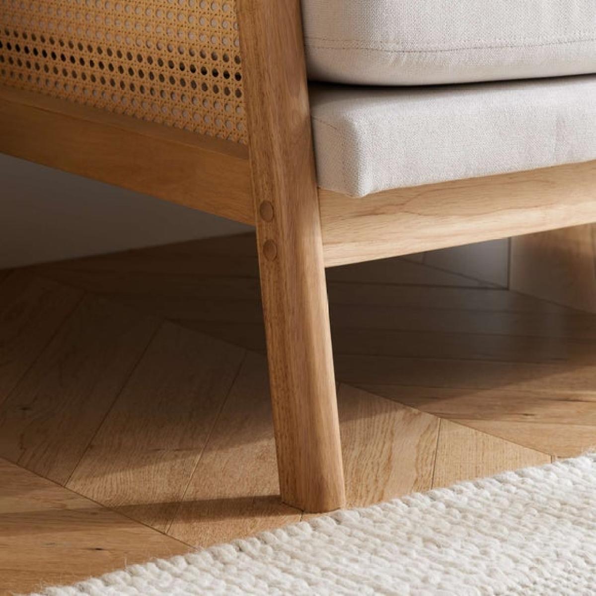This product is priced at 10% less than a brand new model. Brand new price is £399. Returned product price is £359.10. Saving of £39.90. This is a returned item. It has previously been ordered, dispatched, cancelled and collected from our customers and then fully checked by our expert team to ensure that it is in 100% tip top condition and fully packaged. It was cancelled upon delivery and has therefore never been used. However, because this line is not strictly 'new', we have discounted it to clear! * Rattan frame * Cotton upholstered seat * Foam filled With its robust frame and finely woven rattan sides, this sofa exudes a breezy, organic feel that complements its sleek, contemporary lines. The cushions are generously padded, providing deep seating and excellent back support, and are upholstered in a soft, durable fabric that combines comfort and style. This two-seater option is perfect for both compact and spacious interiors, making it a versatile addition to any living space.