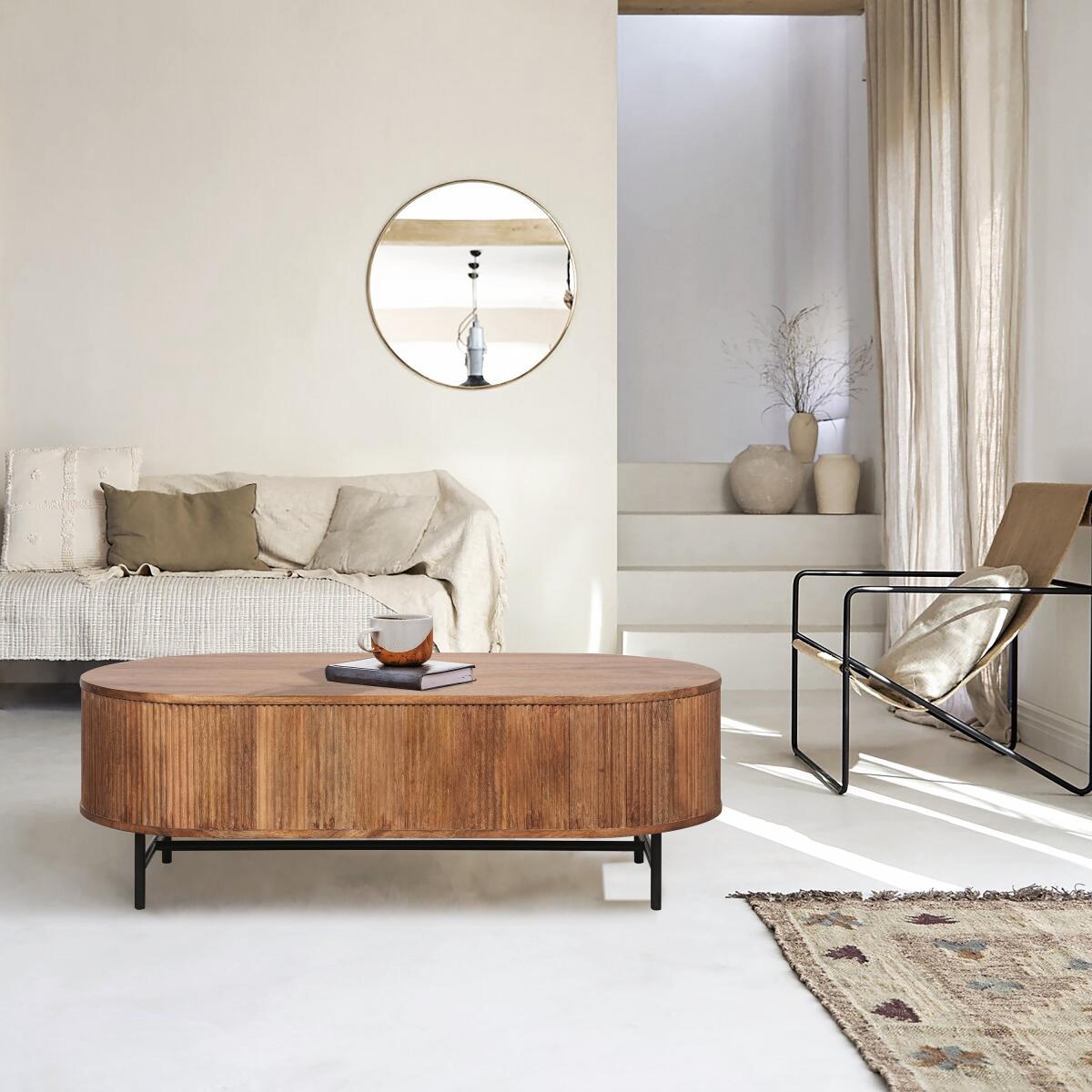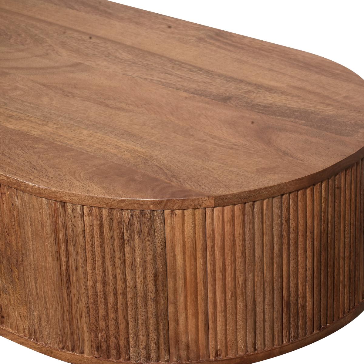 This product is priced at 10% less than a brand new model. Brand new price is £499. Returned product price is £449.10. Saving of £49.90. This is a returned item. It has previously been ordered, dispatched, cancelled and collected from our customers and then fully checked by our expert team to ensure that it is in 100% tip top condition and fully packaged. It was cancelled upon delivery and has therefore never been used. However, because this line is not strictly 'new', we have discounted it to clear! * Stylish coffee table * Mango wood effect with Ribbed design * Features Zen oval shape with a ribbed design * Supported by Black Iron Legs This Indus Valley Zen Coffee Table showcases a sleek Zen oval shape crafted with a ribbed design and supported by black iron legs. Please note we are unable to deliver this item to Northern Ireland.