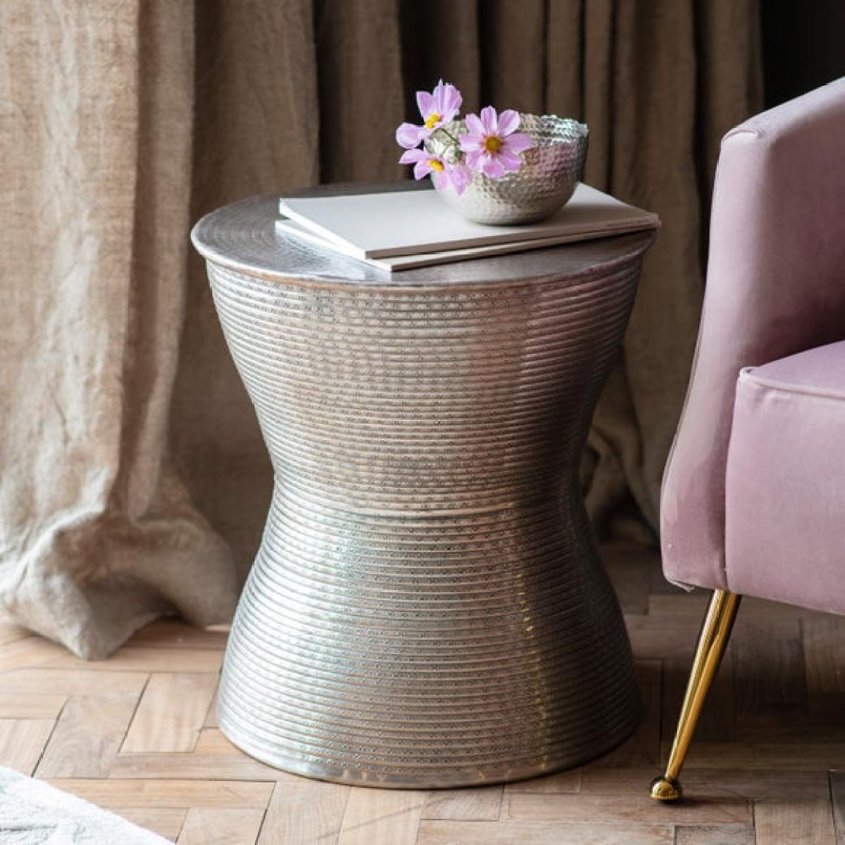 This product is priced at 30% less than a brand new model. Brand new price is £129. Returned product price is £116.10. Saving of £12.90. This is a returned item. It has previously been ordered, dispatched, cancelled and collected from our customers and then fully checked by our expert team to ensure that it is in 100% tip top condition and fully packaged. It was cancelled upon delivery and has therefore never been used. However, because this line is not strictly 'new', we have discounted it to clear! * Metal occasional table * Handmade * Perfect for adding the finishing touch to your living space * Finished in antique silver * Beautifully artisanal finishing touch Metal occasional table with a handmade quality. Perfect for adding the finishing touch to your living space. Finished in antique silver, this hand finished side table is a beautifully artisanal finishing touch.