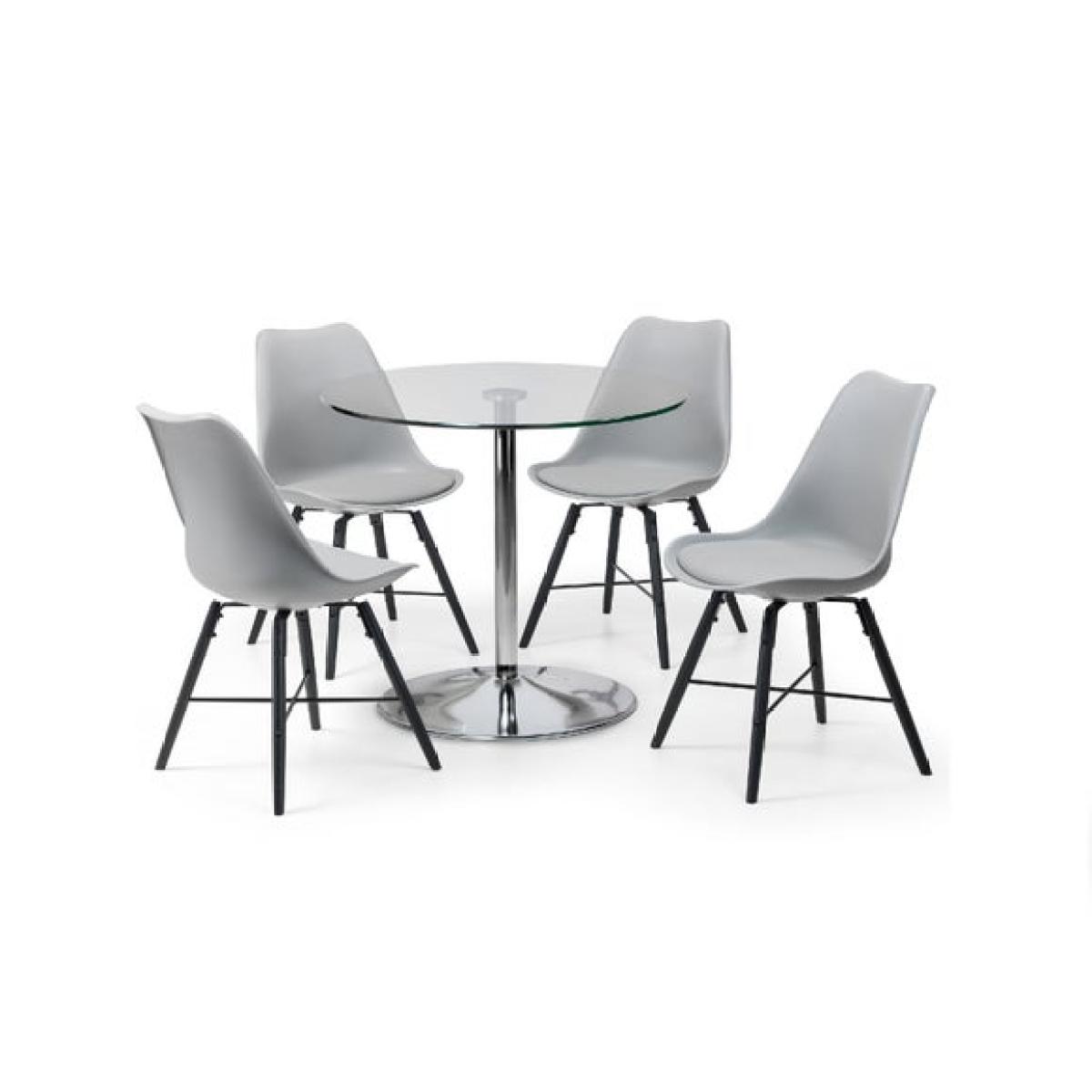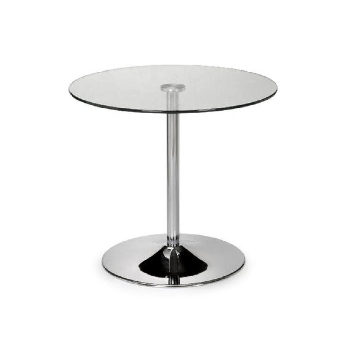 This product is priced at 10% less than a brand new model. Brand new price is £225. Returned product price is £202.50. Saving of £22.50. This is a returned item. It has previously been ordered, dispatched, cancelled and collected from our customers and then fully checked by our expert team to ensure that it is in 100% tip top condition and fully packaged. It was cancelled upon delivery and has therefore never been used. However, because this line is not strictly 'new', we have discounted it to clear! * Clear tempered glass top * Polished chrome base * Crisp and clean modern look * Seats up to 4 people Dine in class and glass, this Kudos dining table set is perfect for adding a modern touch to your home. This dining table is made with a polished chrome base and tempered glass top for a sleek and durable construction.