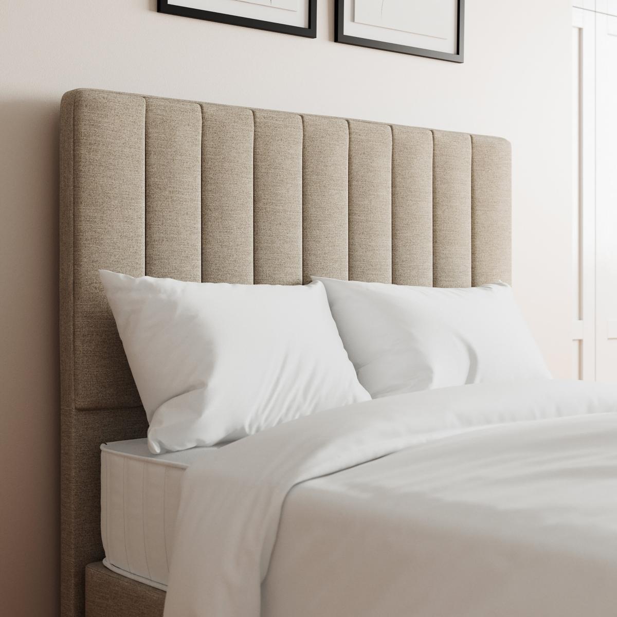 Return - Luxury Linen Vertical Stripe Headboard, Kingsize Beige