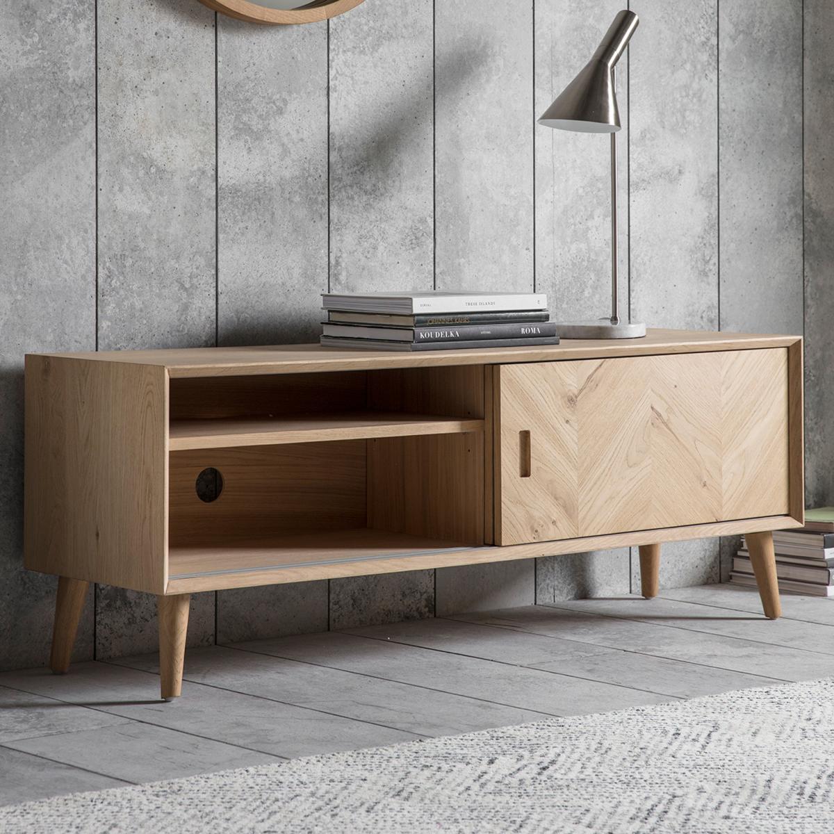 This product is priced at 10% less than a brand new model. Brand new price is £629. Returned product price is £566.10. Saving of £62.90. This is a returned item. It has previously been ordered, dispatched, cancelled and collected from our customers and then fully checked by our expert team to ensure that it is in 100% tip top condition and fully packaged. It was cancelled upon delivery and has therefore never been used. However, because this line is not strictly 'new', we have discounted it to clear! * Solid oak construction * Inlayed chevron design * Finished in a mat lacquer to highlight the natural wood grain Cool and sleek Manila 2 Door 3 Drawer Sideboard, featuring a beautiful inlay chevron design, and made using European oak and rustic oak structured veneers which show the natural beauty of the oak grain and knots. Finished in a specialist mat lacquer, which keeps the timber looking natural and dry, with brushed out grain, the sideboard is tactile to touch and looks amazing. Flush finish drawers and doors show the stylish chevron pattern and the true beauty of the oak.