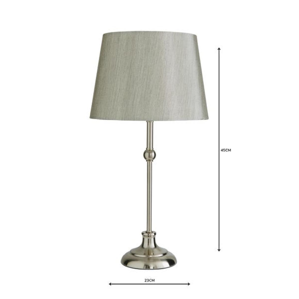 This product is priced at 10% less than a brand new model. Brand new price is £22. Returned product price is £19.80. Saving of £2.20. This is a returned item. It has previously been ordered, dispatched, cancelled and collected from our customers and then fully checked by our expert team to ensure that it is in 100% tip top condition and fully packaged. It was cancelled upon delivery and has therefore never been used. However, because this line is not strictly 'new', we have discounted it to clear! * Classic Candlestick Design * Stylish Ball Detailing * Handy In-Line Switch * Faux Silk Shade * Available in Multiple Colourways Add a touch of elegance to any room with the Metal Ball Table Lamp. Featuring a classic candlestick design adorned with stylish ball detailing, this lamp is paired with a luxurious faux silk shade. The handy in-line switch ensures effortless control, making it as practical as it is beautiful. Choose from multiple colourways to perfectly match your décor.