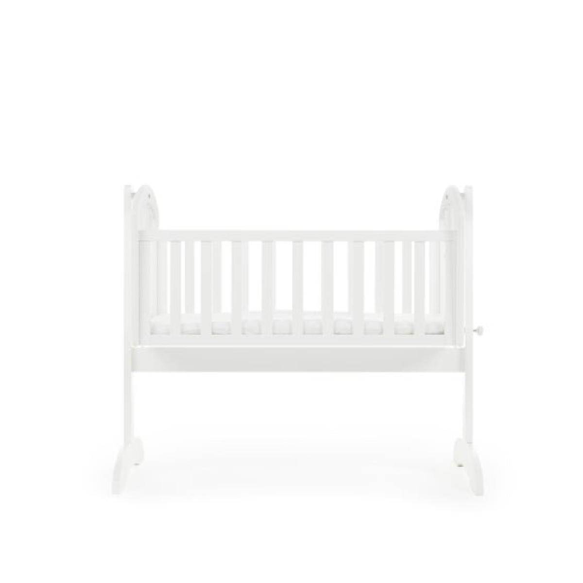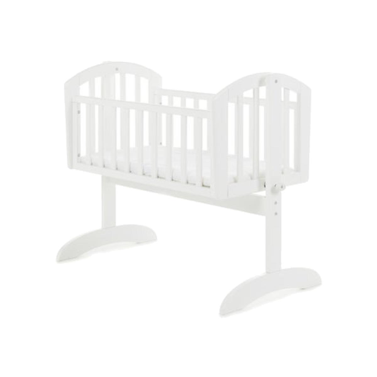 This product is priced at 10% less than a brand new model. Brand new price is £105. Returned product price is £94.50. Saving of £10.50. This is a returned item. It has previously been ordered, dispatched, cancelled and collected from our customers and then fully checked by our expert team to ensure that it is in 100% tip top condition and fully packaged. It was cancelled upon delivery and has therefore never been used. However, because this line is not strictly 'new', we have discounted it to clear! * Allows a gentle rocking motion to sooth your baby * Can be locked into a stationary position * Slatted ends and sides for great visibility * Classic design to suit any nursery theme * Suitable from birth to approximately 6 months old * Requires a mattress measuring 85cm x 43cm * Mattressnot included When the time comes for your baby to rest, this crib rocks to help sooth them to sleep. Once your baby is sleeping, you are able to lock the crib into place to help them remain sturdy if they toss and turn. Checking in on your little one is easy with the slatted ends and sides.