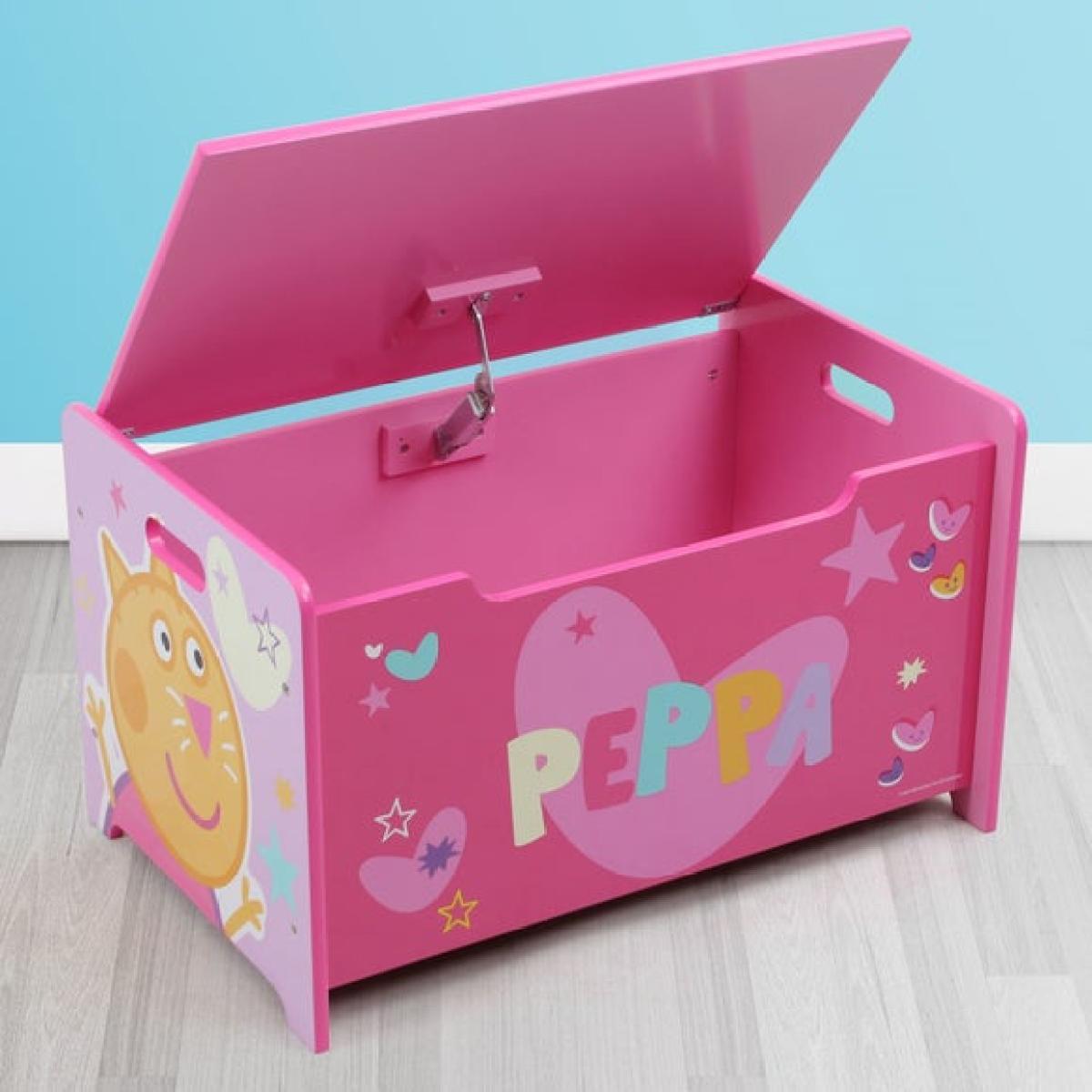 This product is priced at 10% less than a brand new model. Brand new price is £58. Returned product price is £52.20. Saving of £5.80. This is a returned item. It has previously been ordered, dispatched, cancelled and collected from our customers and then fully checked by our expert team to ensure that it is in 100% tip top condition and fully packaged. It was cancelled upon delivery and has therefore never been used. However, because this line is not strictly 'new', we have discounted it to clear! * Wooden frame * Multi-use * Easy to assemble Featuring vibrant graphics of Peppa and durable wood construction, this toy box is designed with rounded corners, smooth edges, and a slow-closing lid to ensure child safety. Not only is it perfect for storing all their toys, but it also doubles as a convenient bench for seating. Ideal for any playroom or bedroom, this quality wooden storage box is both functional and stylish.